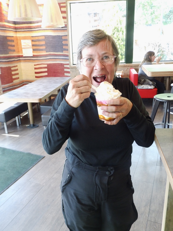 Onderweg stoppen we nog voor een pauze. Even iets eten en drinken. Dan ziet Mels iets. We stoppen zo. Zegt hij. Bij….Mc. Donalds. Hier pakken we een lekker ijs. Het smaakt ons zeer goed. Verder met de rit wegomlegging. Maar we komen er wel. Tanken moet ook nog gebeuren. En nadat we dat hebben gedaan beginnen we aan het laatste stuk. Nog ongeveer anderhalf uur. Even na half 8 komen we aan in ons hotel.