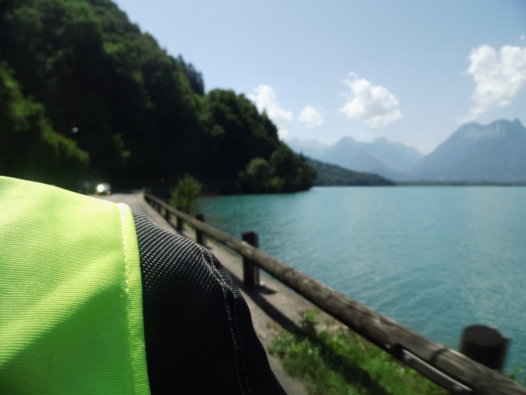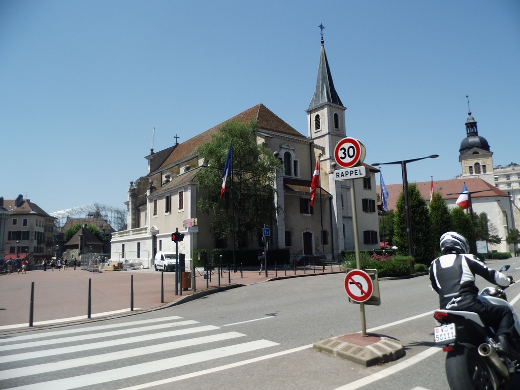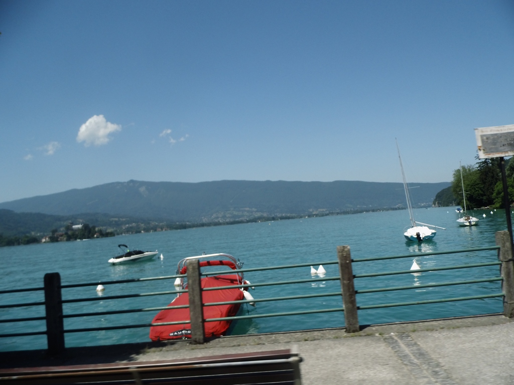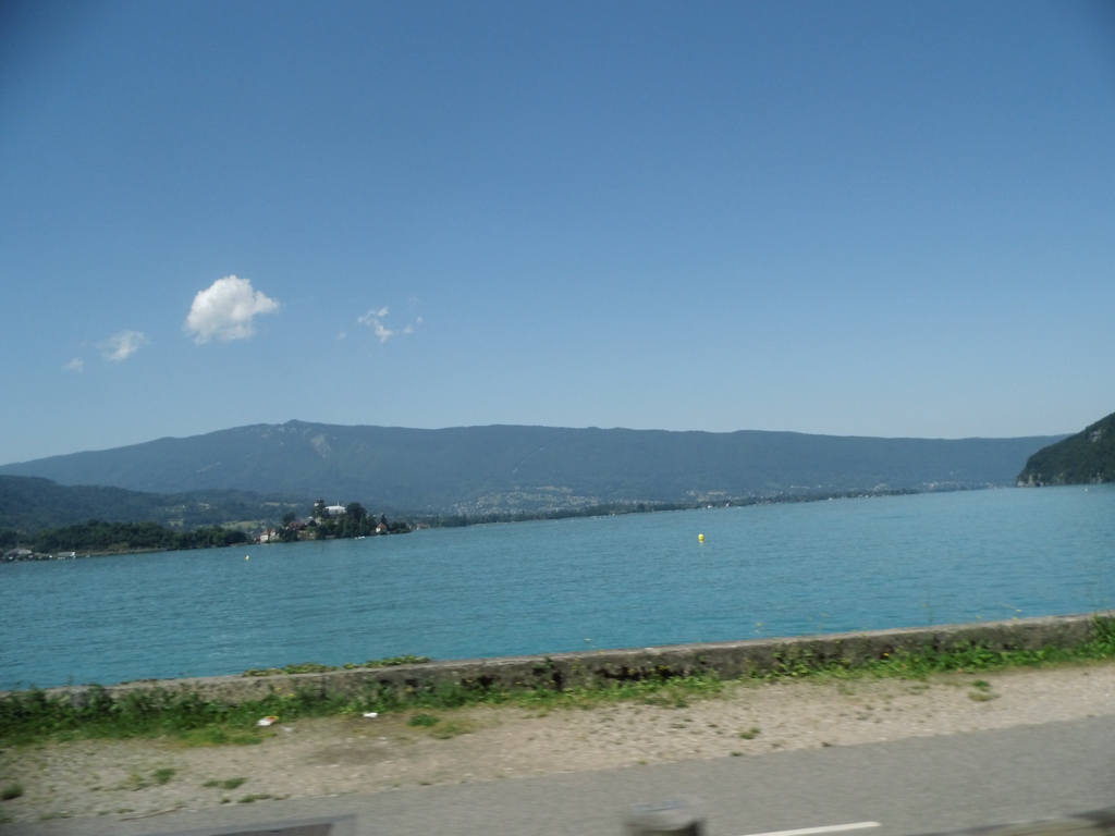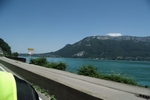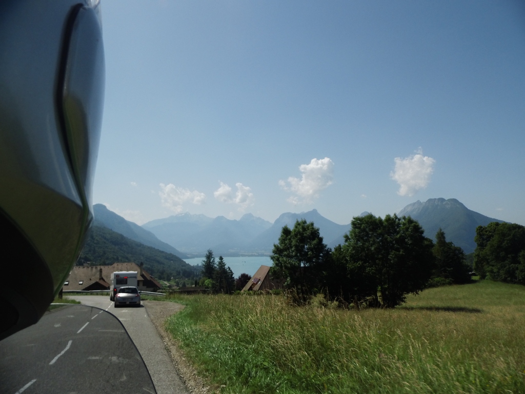 We gaan vandaag naar het meer van Annassy. Via binnen door weggetjes komen we bij het meer aan. Onderweg zien we dat hier de tour fe France door plaatsjes komt. Het zonnetjes schijnt. Het is een mooie dag. Blauwe lucht. Prachtig meer. De omgeving is ook heel mooi. Je rijdt zo langs het water. Als je de motor ergens zou parkeren kan men direct het water inlopen. Nergens geen hekken of poortjes. Iedereen kan zo gaan zwemmen. We rijden de bergen weer in en nemen nog enkele cols. Dan geeft Mels aan dat we moeten gaan tanken. We besluiten om een col niet te nemen en naar de stad Annassy te rijden en daar een tankstation te zoeken. Nadat we getankt hebben nog even pauze nemen. Iets drinken en appeltje eten. Het is warm. 33 graden. Niet lekker om stil te staan in de stad. We besluiten om terug naar het hotel te rijden.