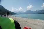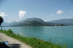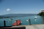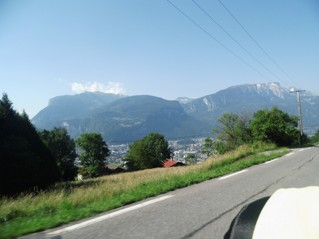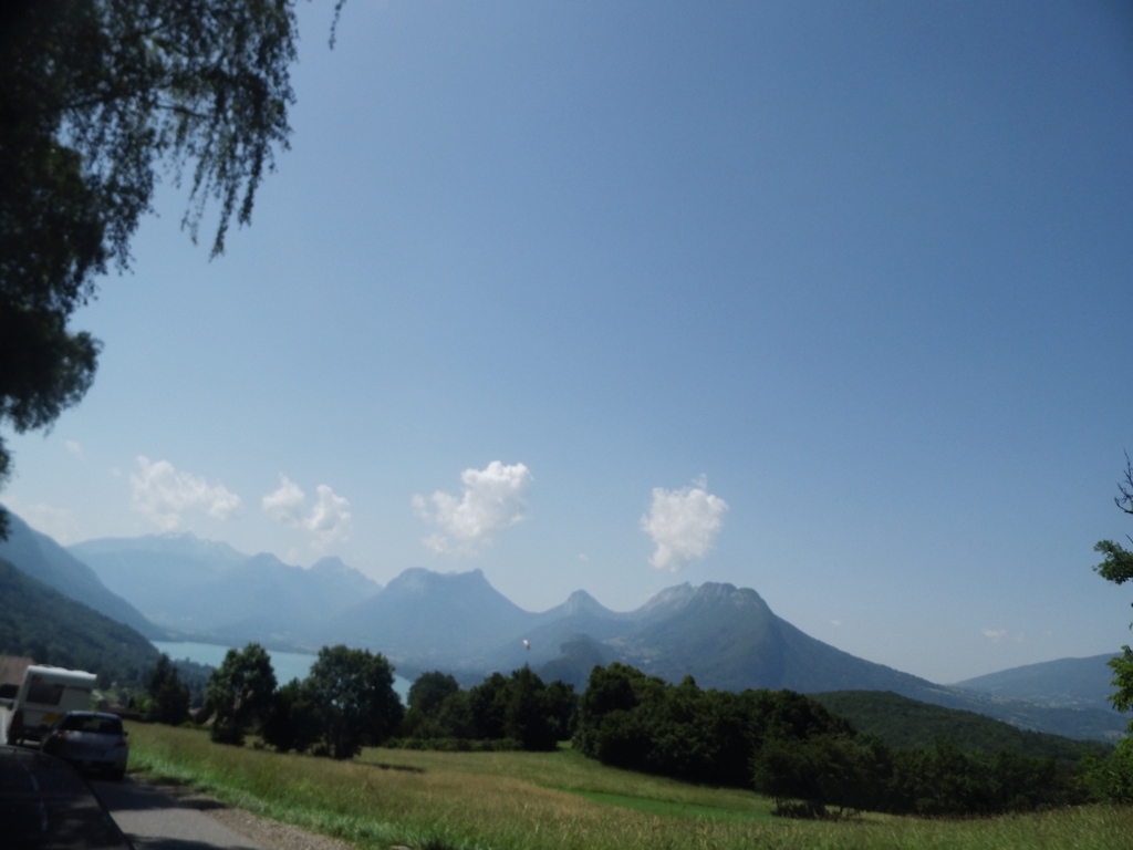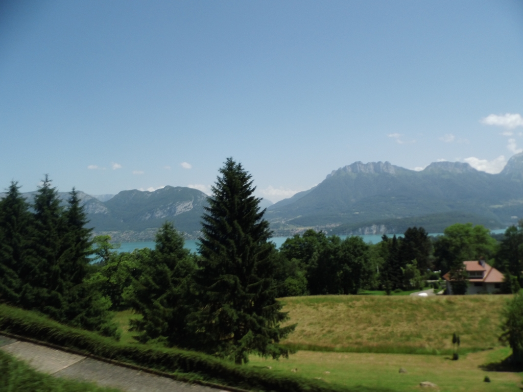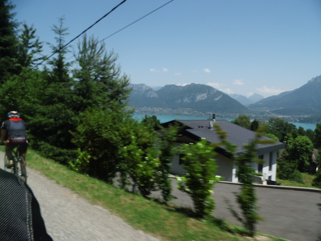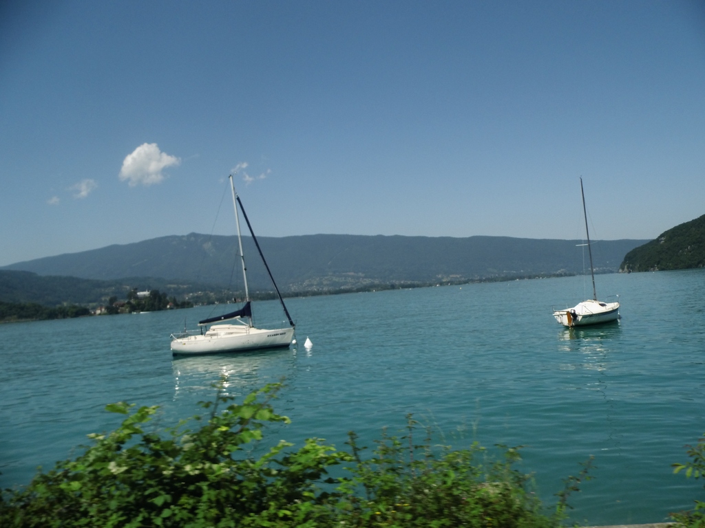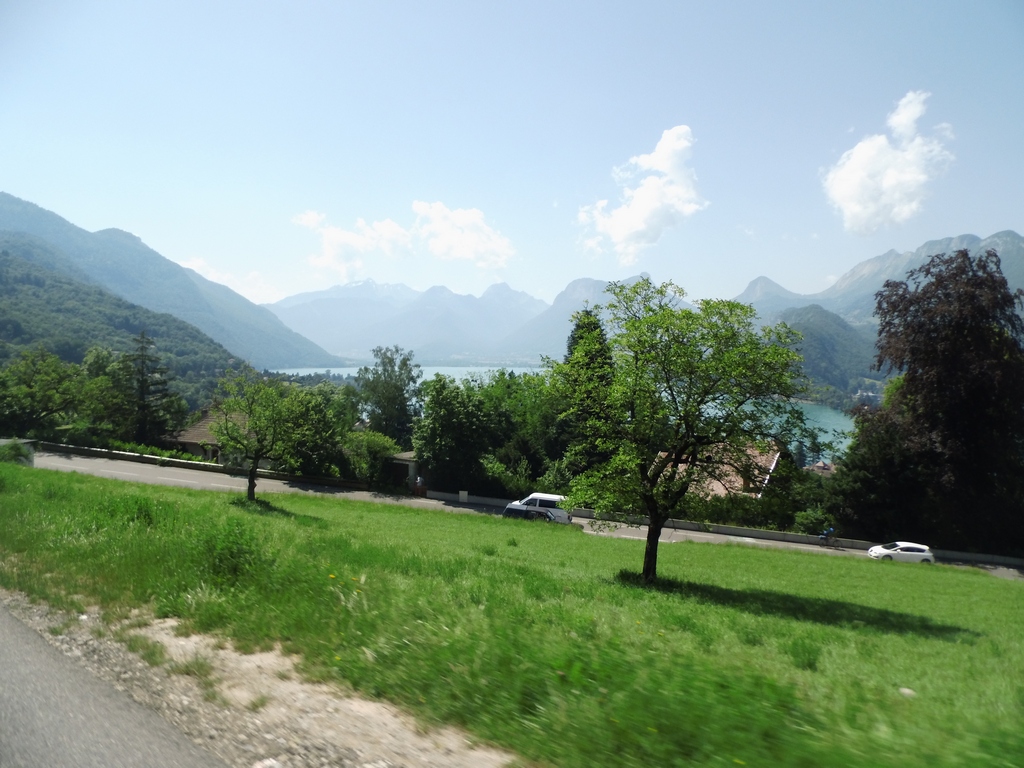 We gaan vandaag naar het meer van Annassy. Via binnen door weggetjes komen we bij het meer aan. Onderweg zien we dat hier de tour fe France door plaatsjes komt. Het zonnetjes schijnt. Het is een mooie dag. Blauwe lucht. Prachtig meer. De omgeving is ook heel mooi. Je rijdt zo langs het water. Als je de motor ergens zou parkeren kan men direct het water inlopen. Nergens geen hekken of poortjes. Iedereen kan zo gaan zwemmen. We rijden de bergen weer in en nemen nog enkele cols. Dan geeft Mels aan dat we moeten gaan tanken. We besluiten om een col niet te nemen en naar de stad Annassy te rijden en daar een tankstation te zoeken. Nadat we getankt hebben nog even pauze nemen. Iets drinken en appeltje eten. Het is warm. 33 graden. Niet lekker om stil te staan in de stad. We besluiten om terug naar het hotel te rijden.