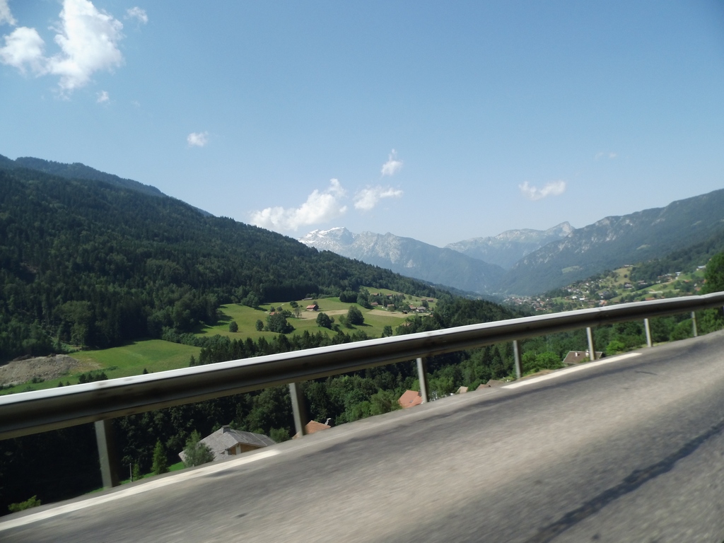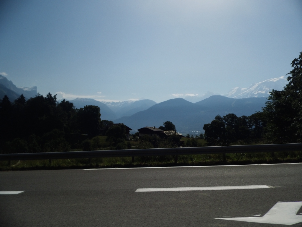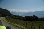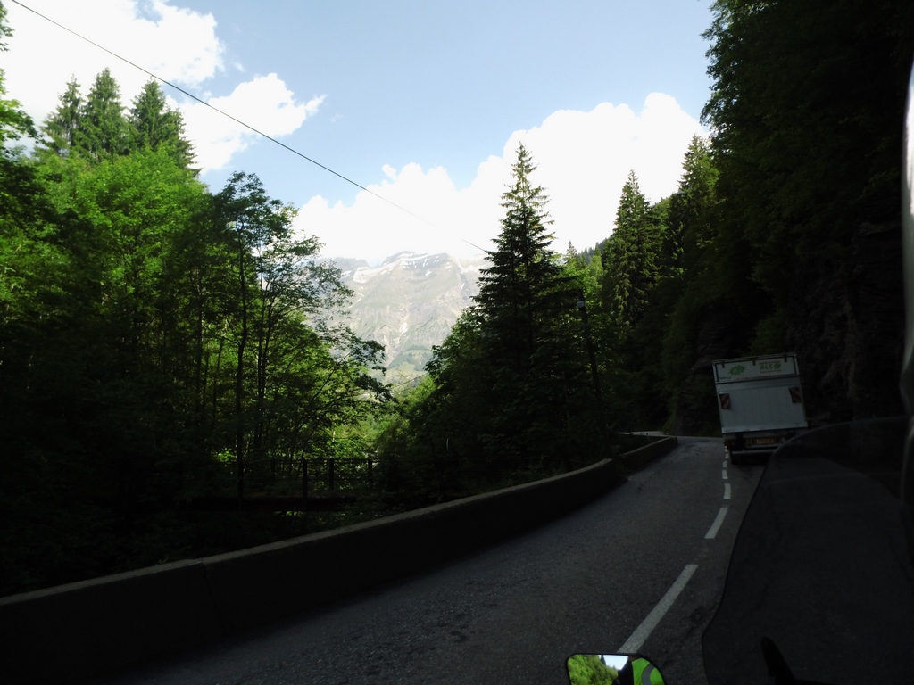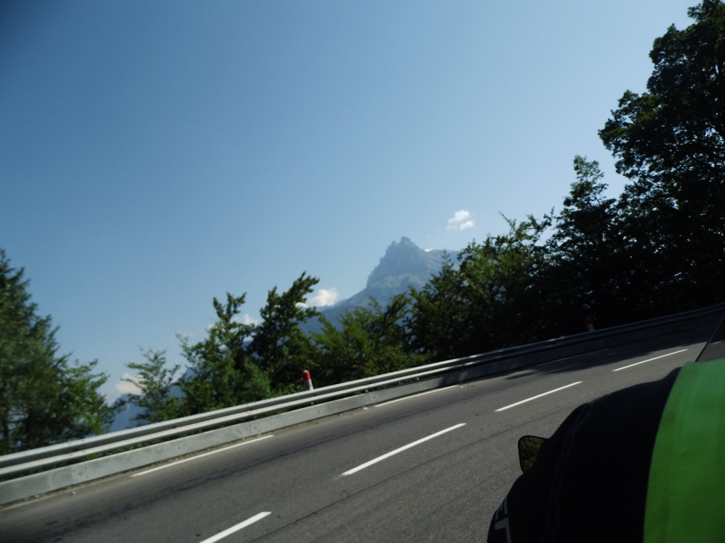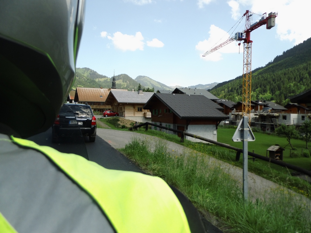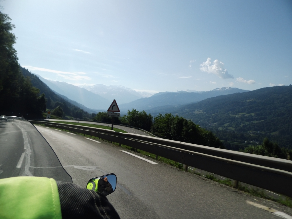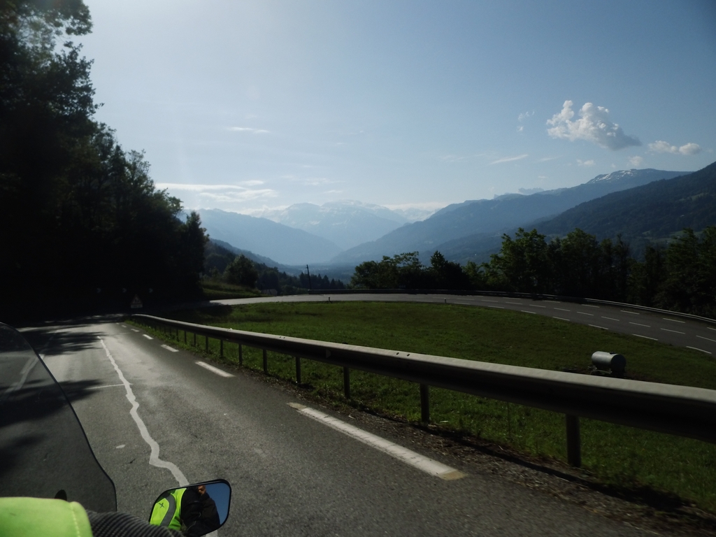 Mels programmeer de navigatie in. Het wordt wel veel autoweg rijden maar het schiet lekker op. Dan zien we het meer van Genève ook nog even. Het laatste stuk naar het hotel kunnen we weer binnendoor. We komen nu op een stuk wat de afgelopen dagen was afgesloten. We kunnen er nu door en het is een mooie route om te rijden. Moe en voldaan komen we om 16:15 uur aan in het hotel. Eerst even lekker douchen. Dan naar beneden om de motor op de kar te zetten.