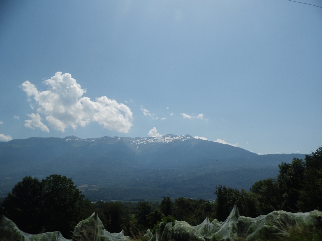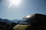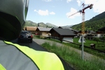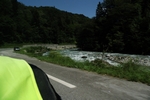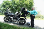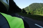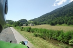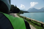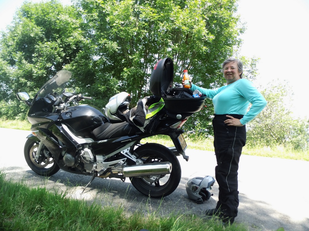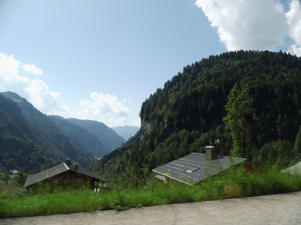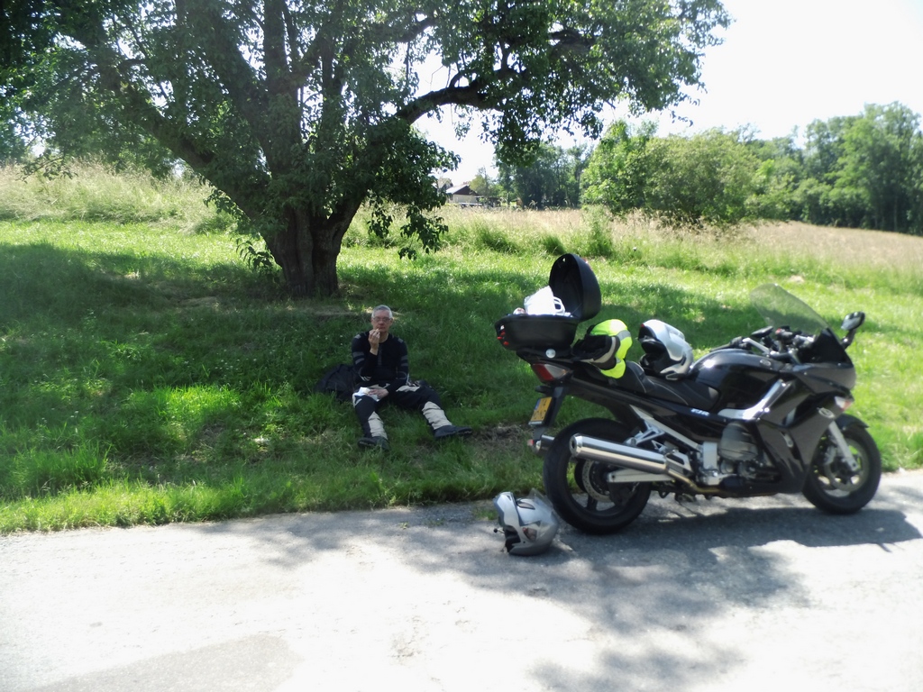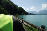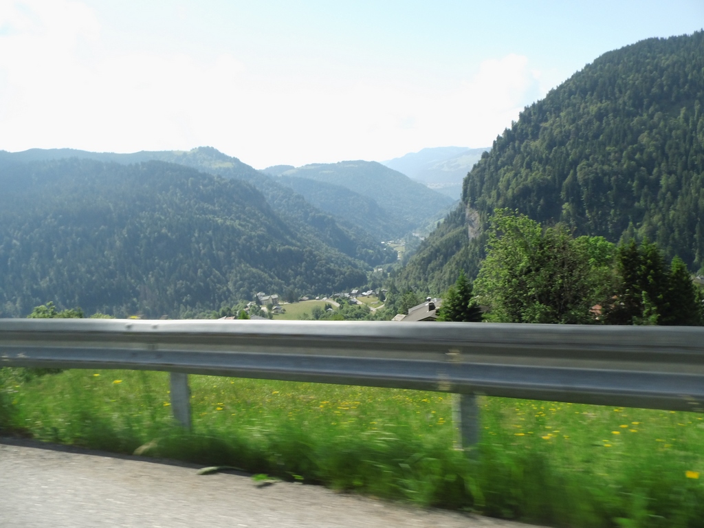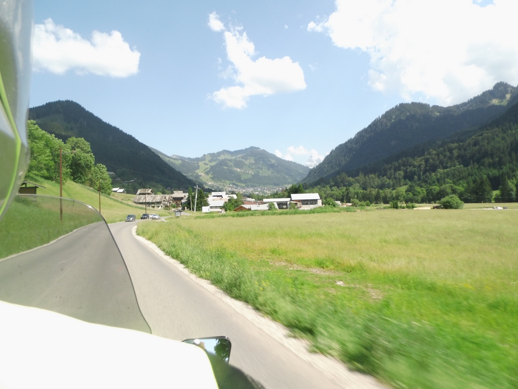 Mels programmeer de navigatie in. Het wordt wel veel autoweg rijden maar het schiet lekker op. Dan zien we het meer van Genève ook nog even. Het laatste stuk naar het hotel kunnen we weer binnendoor. We komen nu op een stuk wat de afgelopen dagen was afgesloten. We kunnen er nu door en het is een mooie route om te rijden. Moe en voldaan komen we om 16:15 uur aan in het hotel. Eerst even lekker douchen. Dan naar beneden om de motor op de kar te zetten.