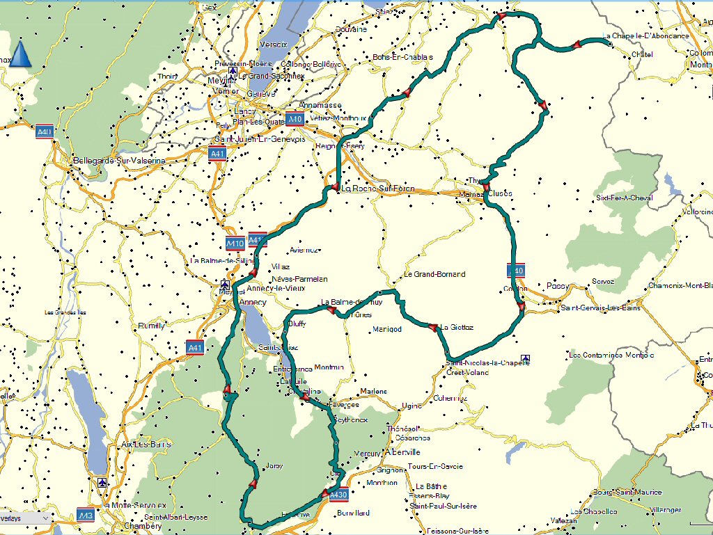 Verslag van Motortoertocht: Bonnevaux, Cluses, St-Nicolas-la-Chapelle, Col des Aravis, rondom Meer van d’Annecy, Tournon, Col du Frêne, Leschaux, Annecy, Villard (360Km)