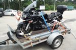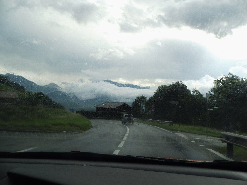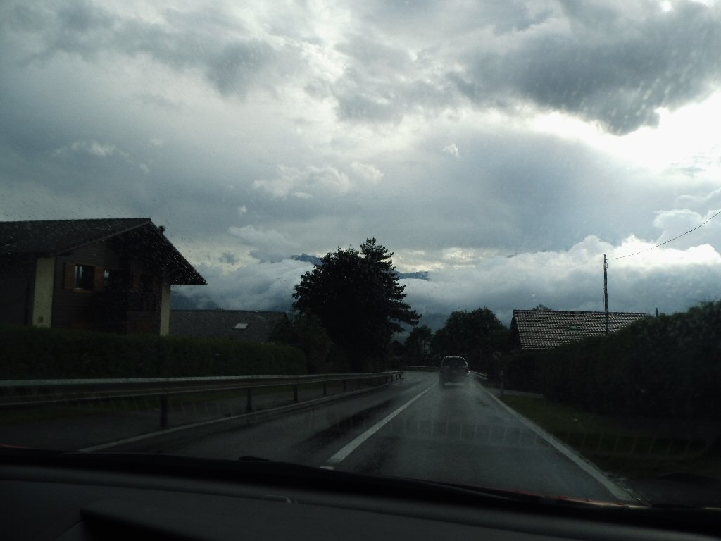 De spulletjes die we nog moeten inpakken doen we nu eerst nog bijelkaar. Als alles gepakt klaar staat besluiten we het eerst naar beneden te brengen. Als we beneden komen moeten we de deur nog openmaken. Het brood hebben ze al gebracht. Het regent nog. Maar snel naar de auto. De eerste lading hebben we bij de auto. De motor even vastsjorren. Het begint harder te regenen. Maar we hebben de motor snel vastzitten. Terug naar boven. Daar pakken we de laatste spullen mee en brengen het naar de auto. We zijn start klaar. Maar eens kijken hoever ze in het restaurant zijn dat we kunnen ontbijten. Een echtpaar is al te ontbijten. Dus ook maar aanschuiven. De kaas, ham, croissants en eieren zijn er nog niet. Maar er meer dan genoeg om te ontbijten.