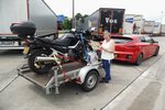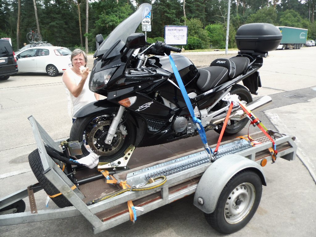 Om 7:45 uur zijn we helemaal start klaar. Nadat we afscheid van Alke hebben genomen vertrekken we naar huis. Het schiet lekker op en om ongeveer 11:10 uur hebben we de eerste stop. Even benen strekken en een beker cappuccino en we kunnen er weer tegen. Als het zo doorgaat zijn we vroeg thuis. Om 12:50 uur hebben we de eerste baustelle. File, maar we rijden langzaam door. Beter dan stilstaan. Om 13:22 hebben we 2 files achter ons. Nu naar een tankstation toe om te tanken en pauze te houden. Komen bij de parkeerplaats / tankstation Hockenheimring aan. Mels tankt de auto vol en Toos gaat betalen. Dan eerst naar het toilet. Hier krijg je een kaartje als men naar het toilet gaat waar men dan weer 50 cent korting krijgt als je koffie pakt. Toos had nog kaartjes van vorig jaar en die van vandaag erbij zijn 7 stuks. Per koffie kan men maar een kaartje inleveren. Toos leest op een bord dat men de kaartjes ook kan inleveren bij de kassa en men krijgt daar dan geld voor krijgen. Zo gedaan. Toos kreeg € 3,50 terug en toen koffie gepakt. Een XXL cappuccino voor € 3,50. Pauze dus met yoghurt en crackers met paté. Als we uitgerust zijn gaan we weer verder.