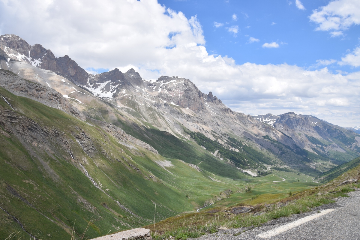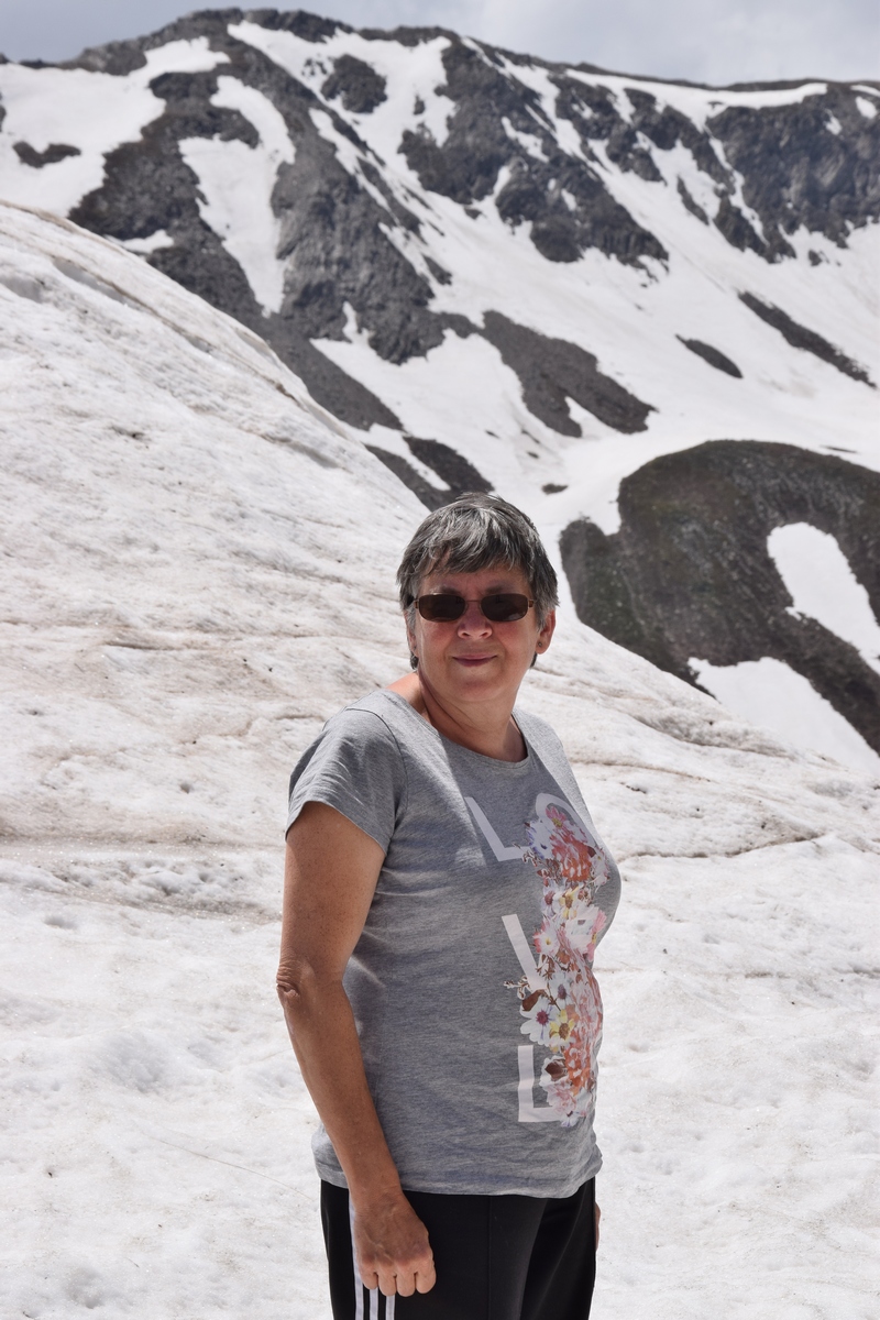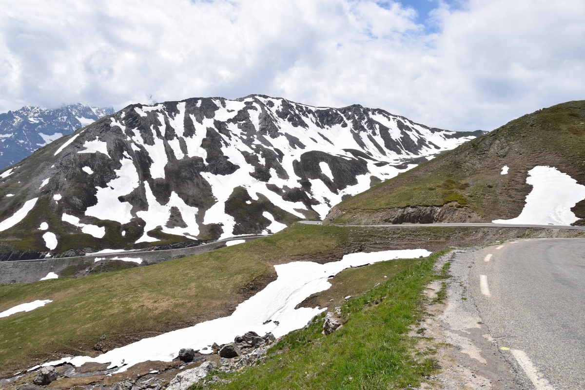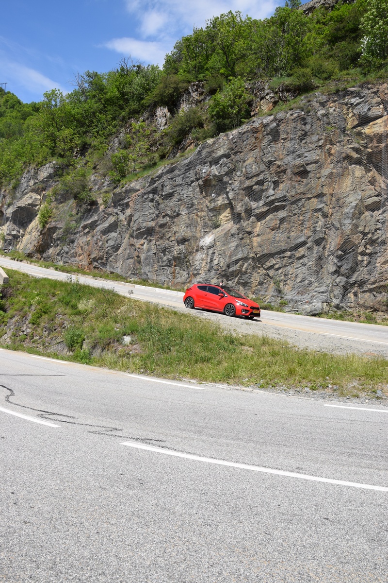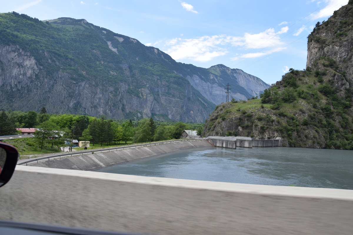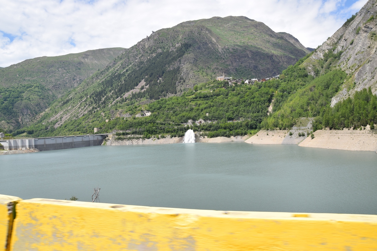 Bij een tolpoortje moet je met een visa kaart betalen. Daar moet even iemand komen om papier geld in ontvangst te nemen. Het lukt niet met Toos haar rabokaart. Bij sommige tolwegen betaal je vooraf. En op een plaats krijgen we zelfs geen wisselgeld terug van de dame al is het maar 30 cent. Maar toch! We rijden vandaag ook enkele bergpassen. Eerst Col de Galibier. Die is 2446 m hoog. Boven is het een mooi uitzicht. Het is er 15 graden lijkt fris maar het valt reuze mee.
