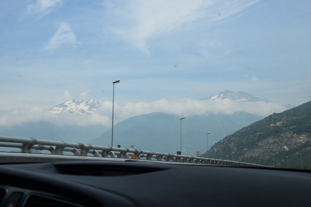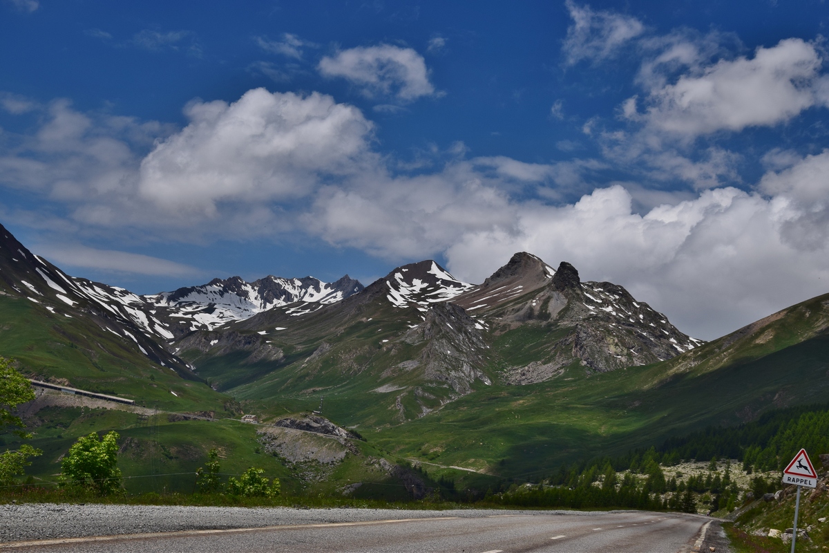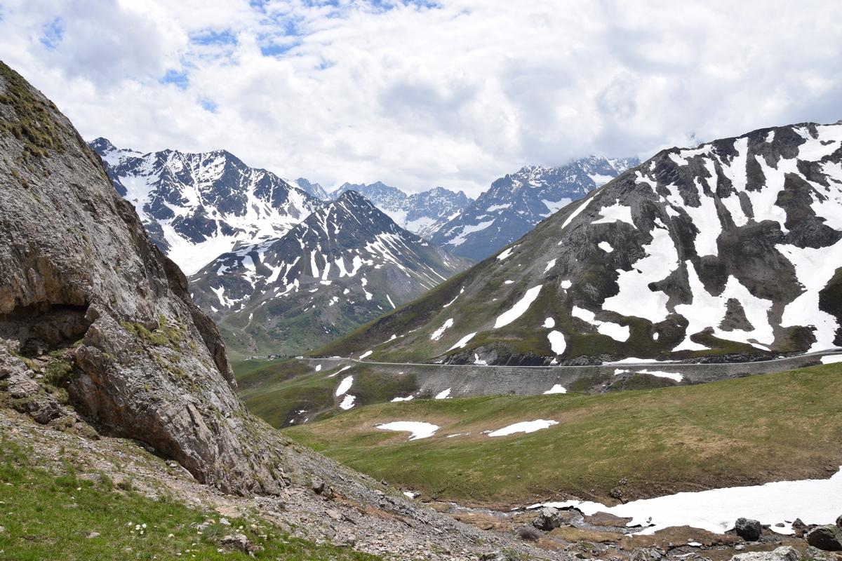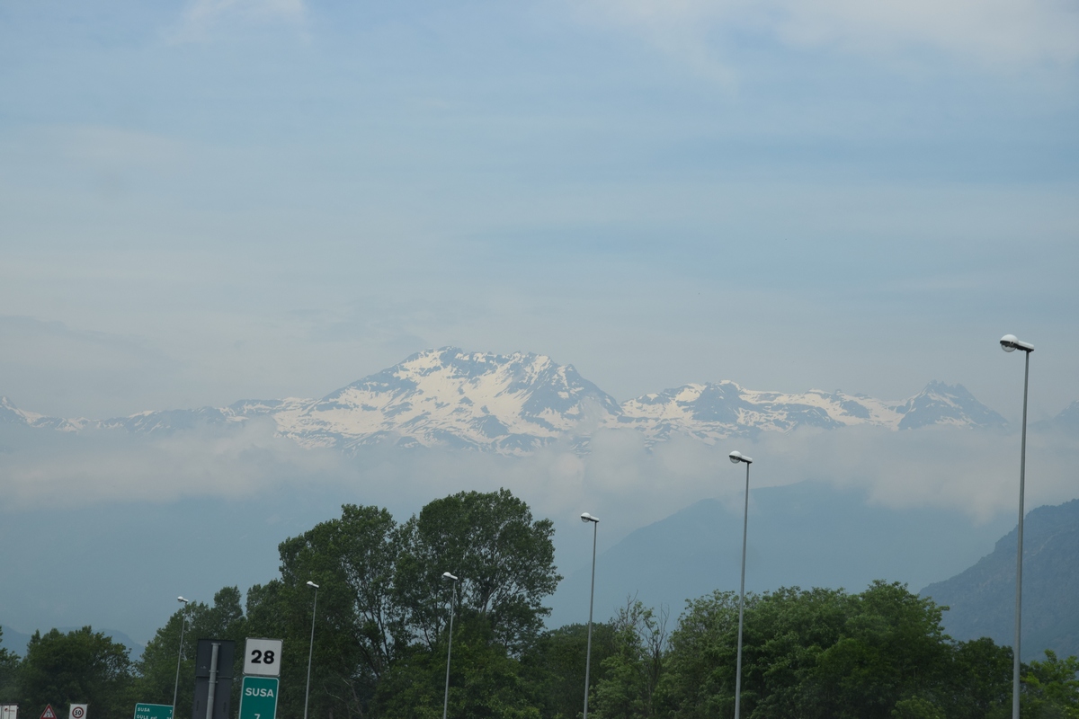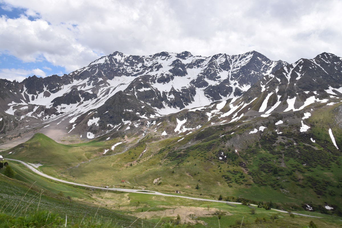 Bij een tolpoortje moet je met een visa kaart betalen. Daar moet even iemand komen om papier geld in ontvangst te nemen. Het lukt niet met Toos haar rabokaart. Bij sommige tolwegen betaal je vooraf. En op een plaats krijgen we zelfs geen wisselgeld terug van de dame al is het maar 30 cent. Maar toch! We rijden vandaag ook enkele bergpassen. Eerst Col de Galibier. Die is 2446 m hoog. Boven is het een mooi uitzicht. Het is er 15 graden lijkt fris maar het valt reuze mee.