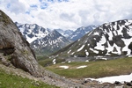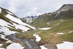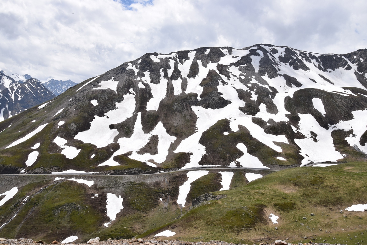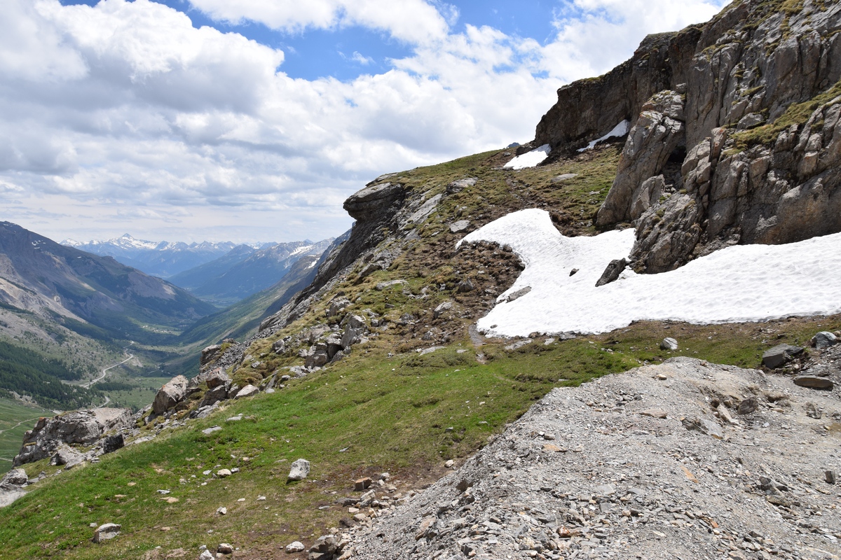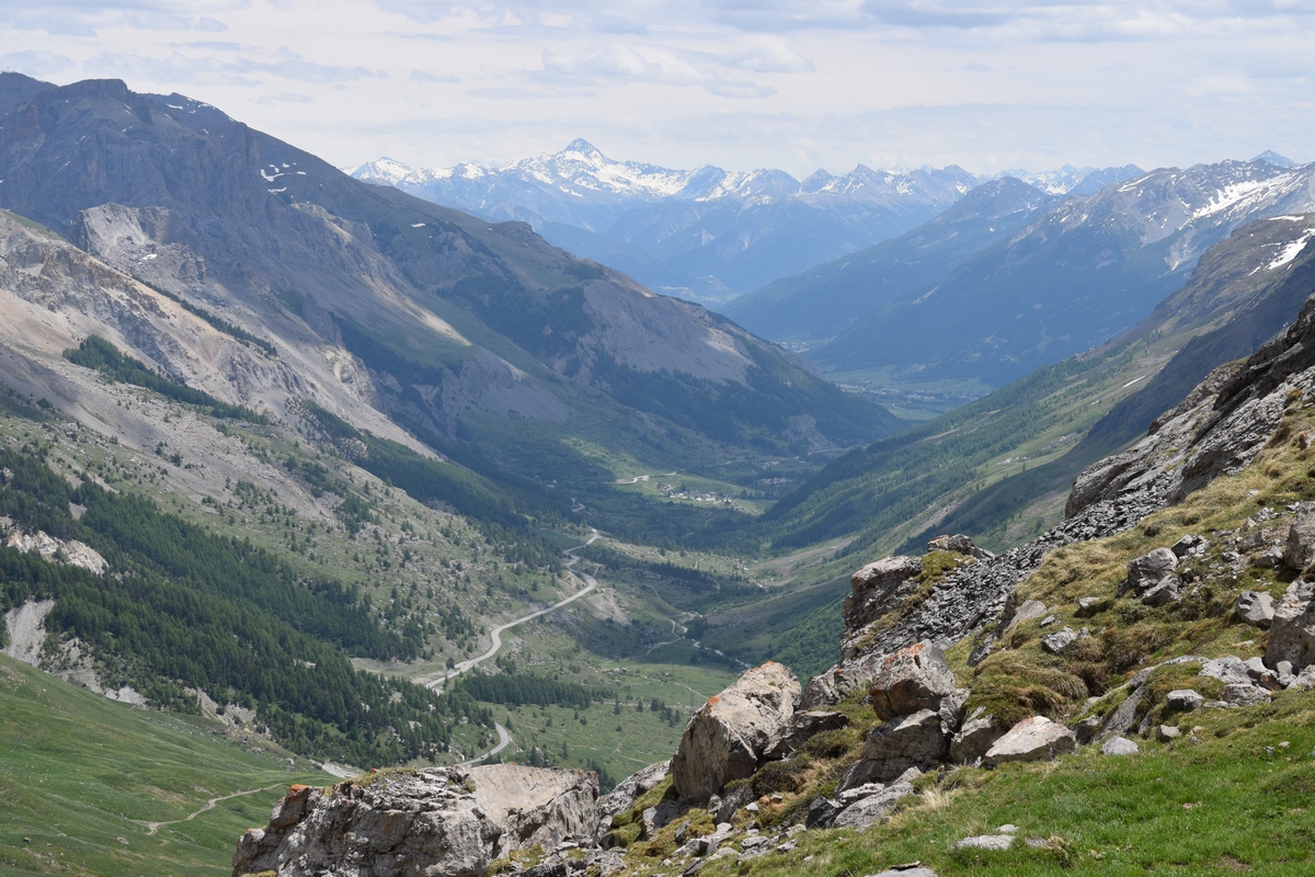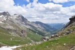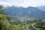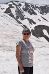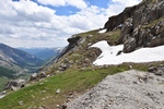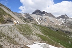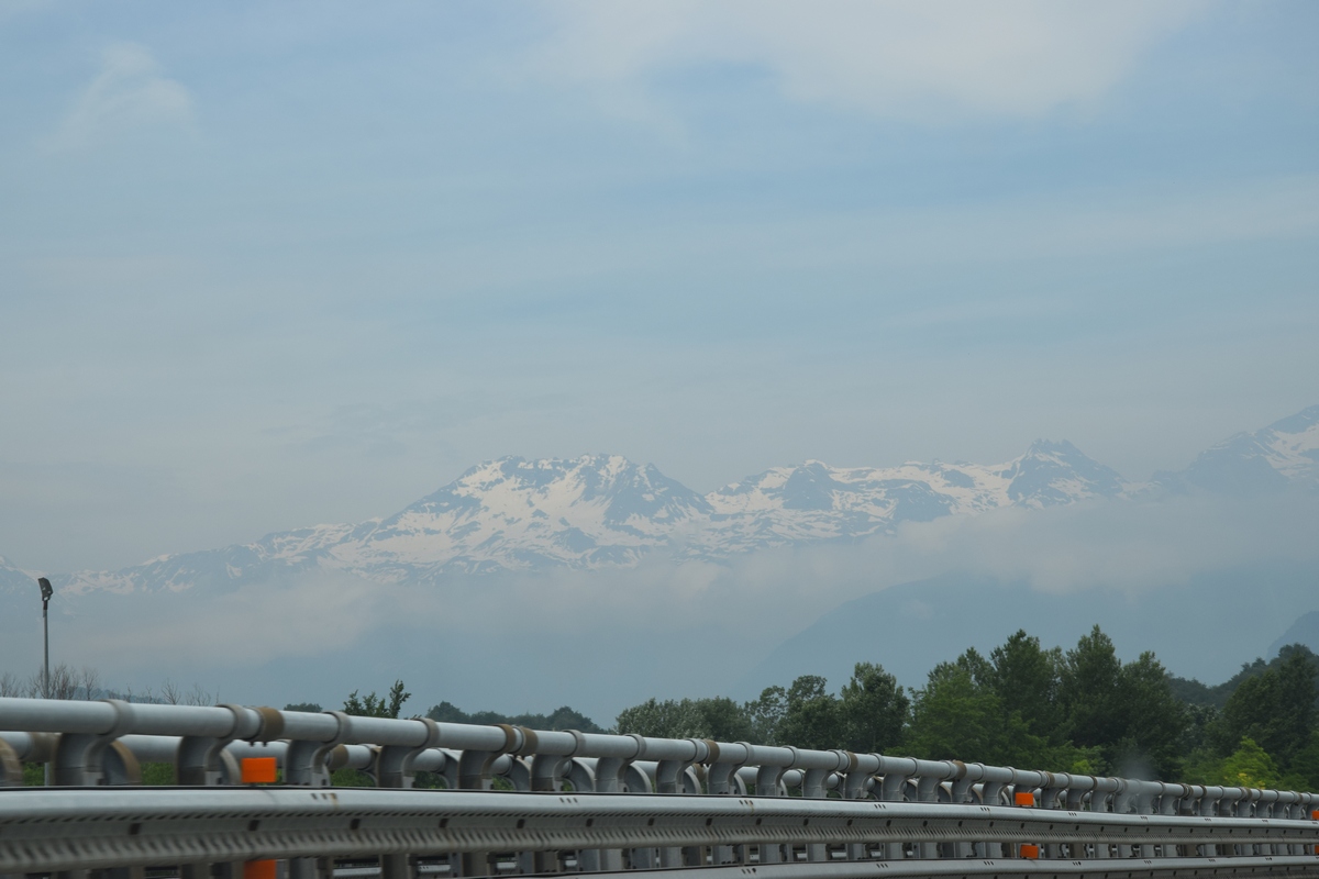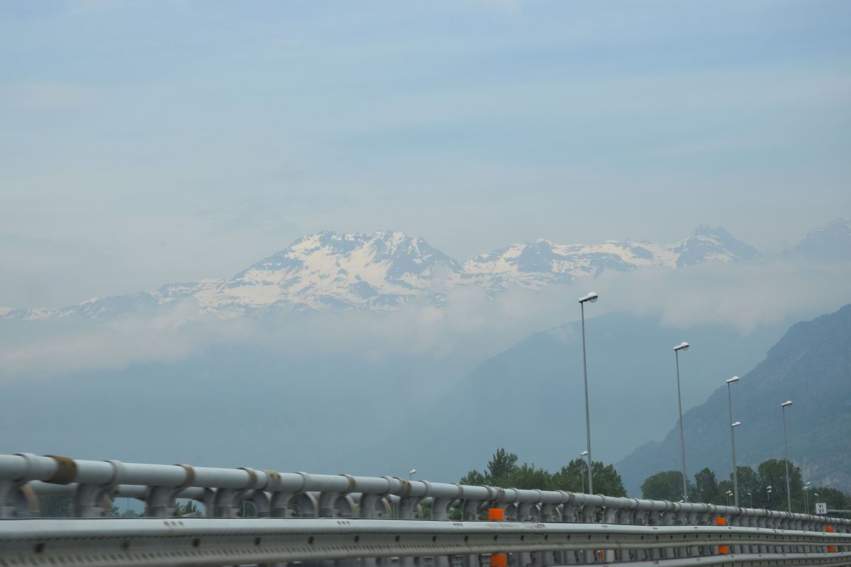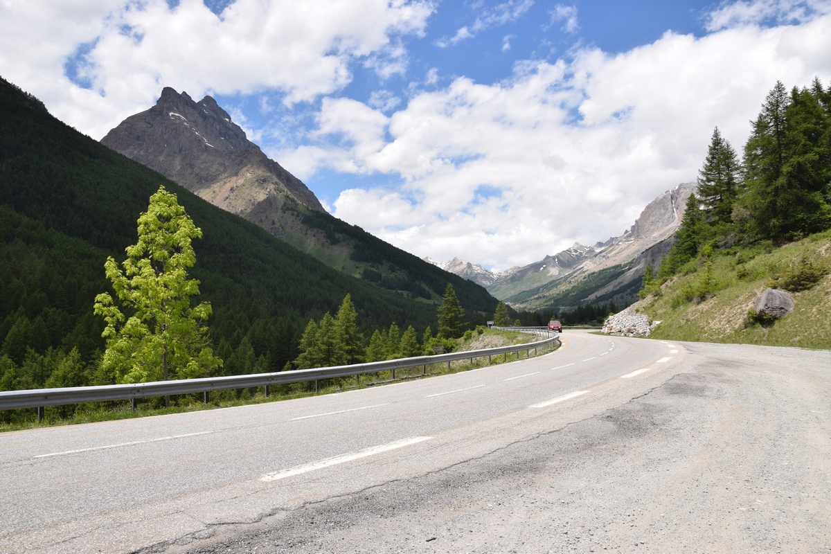 Bij een tolpoortje moet je met een visa kaart betalen. Daar moet even iemand komen om papier geld in ontvangst te nemen. Het lukt niet met Toos haar rabokaart. Bij sommige tolwegen betaal je vooraf. En op een plaats krijgen we zelfs geen wisselgeld terug van de dame al is het maar 30 cent. Maar toch! We rijden vandaag ook enkele bergpassen. Eerst Col de Galibier. Die is 2446 m hoog. Boven is het een mooi uitzicht. Het is er 15 graden lijkt fris maar het valt reuze mee.