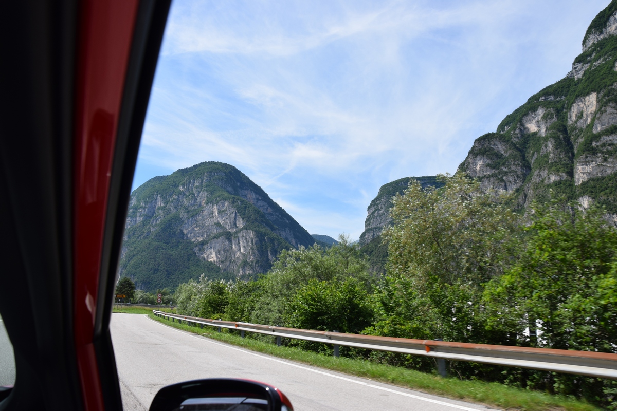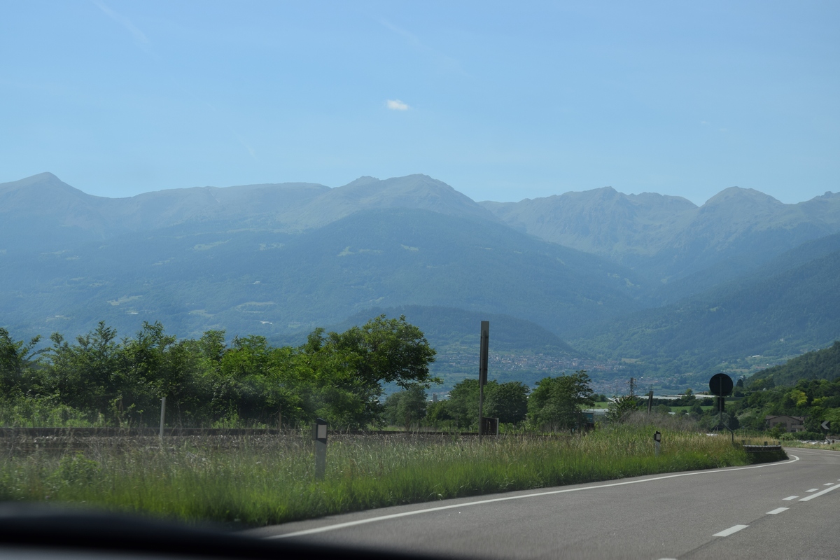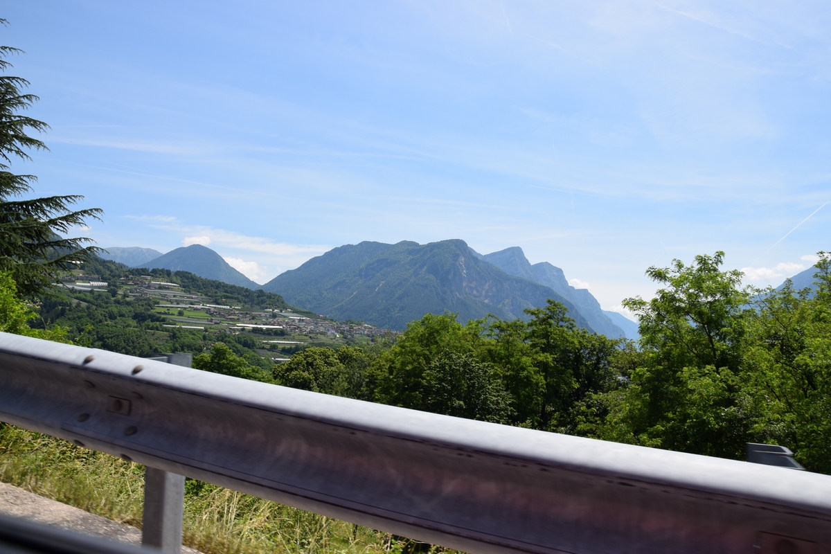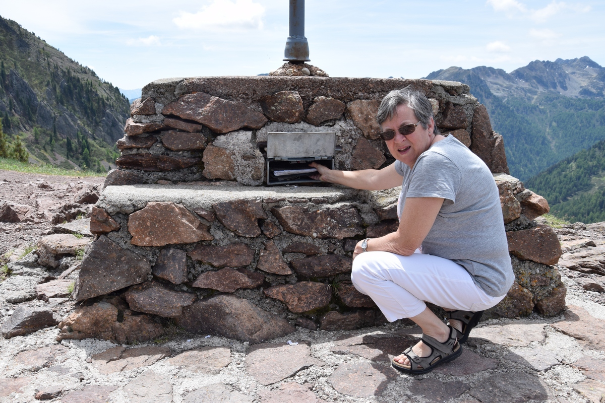 Mels heeft nog snel een route bij elkaar gezocht en we gaan nog een trip maken van enkele uren. We gaan over Passo Manghen. Dit is een pas met een vrij smalle weg en een zeer bosrijke omgeving. We zien niet veel alleen maar bomen maar op de top is het mooi en kun je ver kijken. Hier maken we ook enkele foto’s. Ook staat er een kruis. Onder het kruis is een ijzeren kistje. Als je dat openmaakt dan vind je er boekjes waar in geschreven kan worden. We zoeken in een boekje naar een vrij plekje en schrijven er ook iets in. De boekjes liggen er al enkele jaren. We rijden weer omlaag over de weg die vaker smal dan breed is. Mels toetert voor iedere bocht. Soms zie je dat wielrenners of motors toch moeten bijsturen en dat geeft je dan een goed gevoel dat je hun waarschuw dat je eraan komt. Verder rijden we en komen over Val di Vassaa. Hier zijn we vorig jaar ook geweest en maken weer foto’s bij de grote overdekte brug.