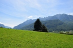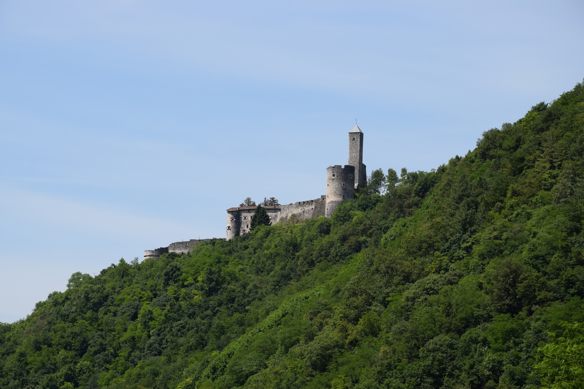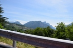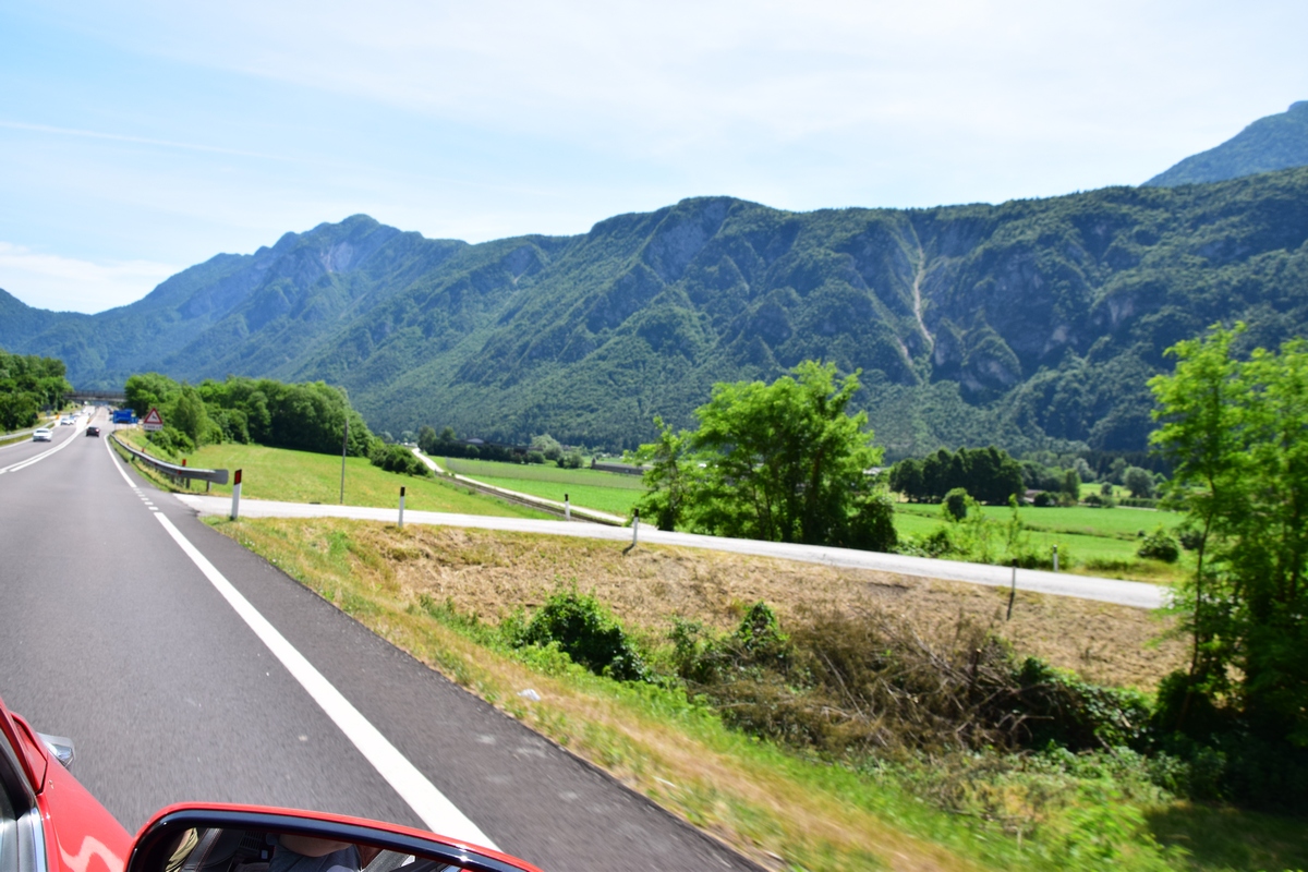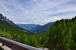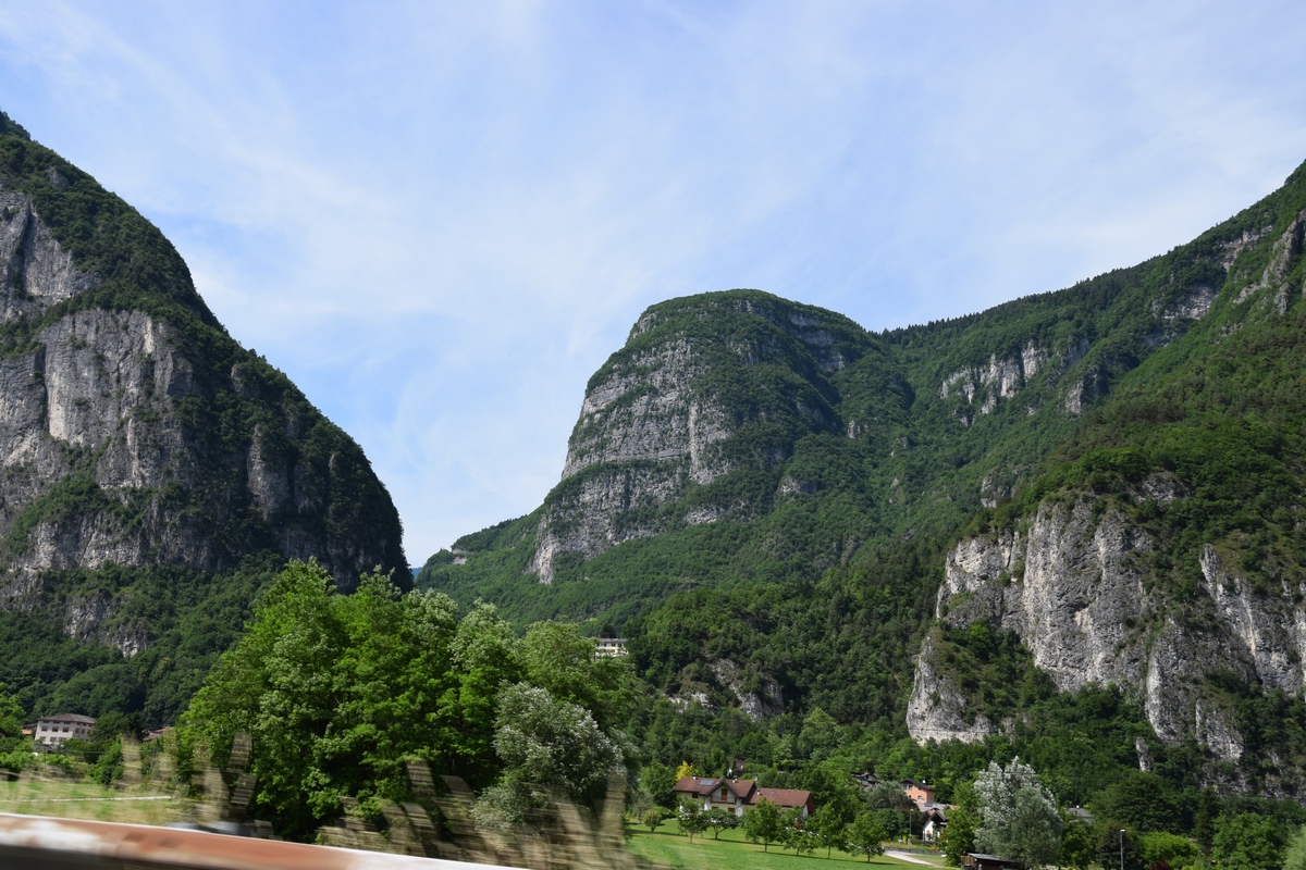 Mels heeft nog snel een route bij elkaar gezocht en we gaan nog een trip maken van enkele uren. We gaan over Passo Manghen. Dit is een pas met een vrij smalle weg en een zeer bosrijke omgeving. We zien niet veel alleen maar bomen maar op de top is het mooi en kun je ver kijken. Hier maken we ook enkele foto’s. Ook staat er een kruis. Onder het kruis is een ijzeren kistje. Als je dat openmaakt dan vind je er boekjes waar in geschreven kan worden. We zoeken in een boekje naar een vrij plekje en schrijven er ook iets in. De boekjes liggen er al enkele jaren. We rijden weer omlaag over de weg die vaker smal dan breed is. Mels toetert voor iedere bocht. Soms zie je dat wielrenners of motors toch moeten bijsturen en dat geeft je dan een goed gevoel dat je hun waarschuw dat je eraan komt. Verder rijden we en komen over Val di Vassaa. Hier zijn we vorig jaar ook geweest en maken weer foto’s bij de grote overdekte brug.