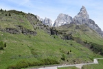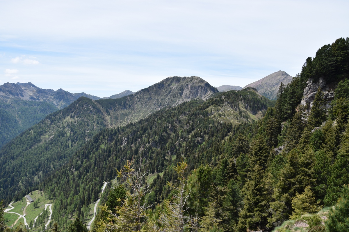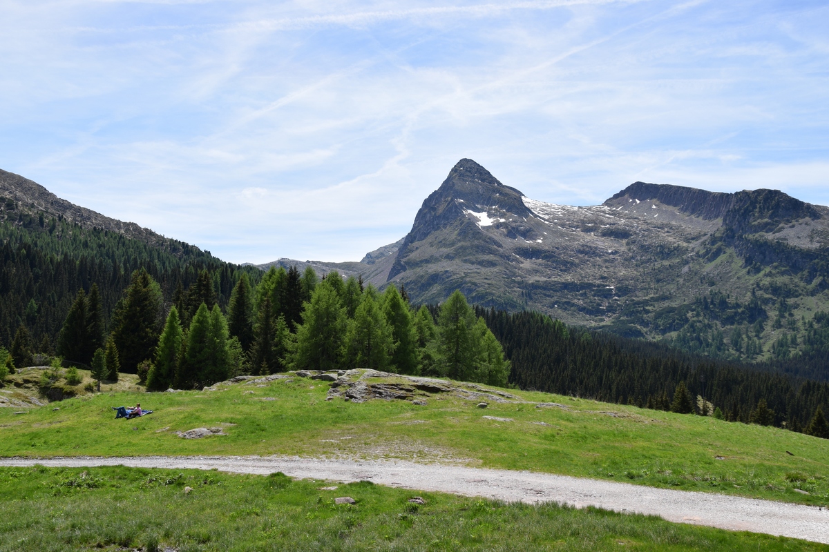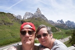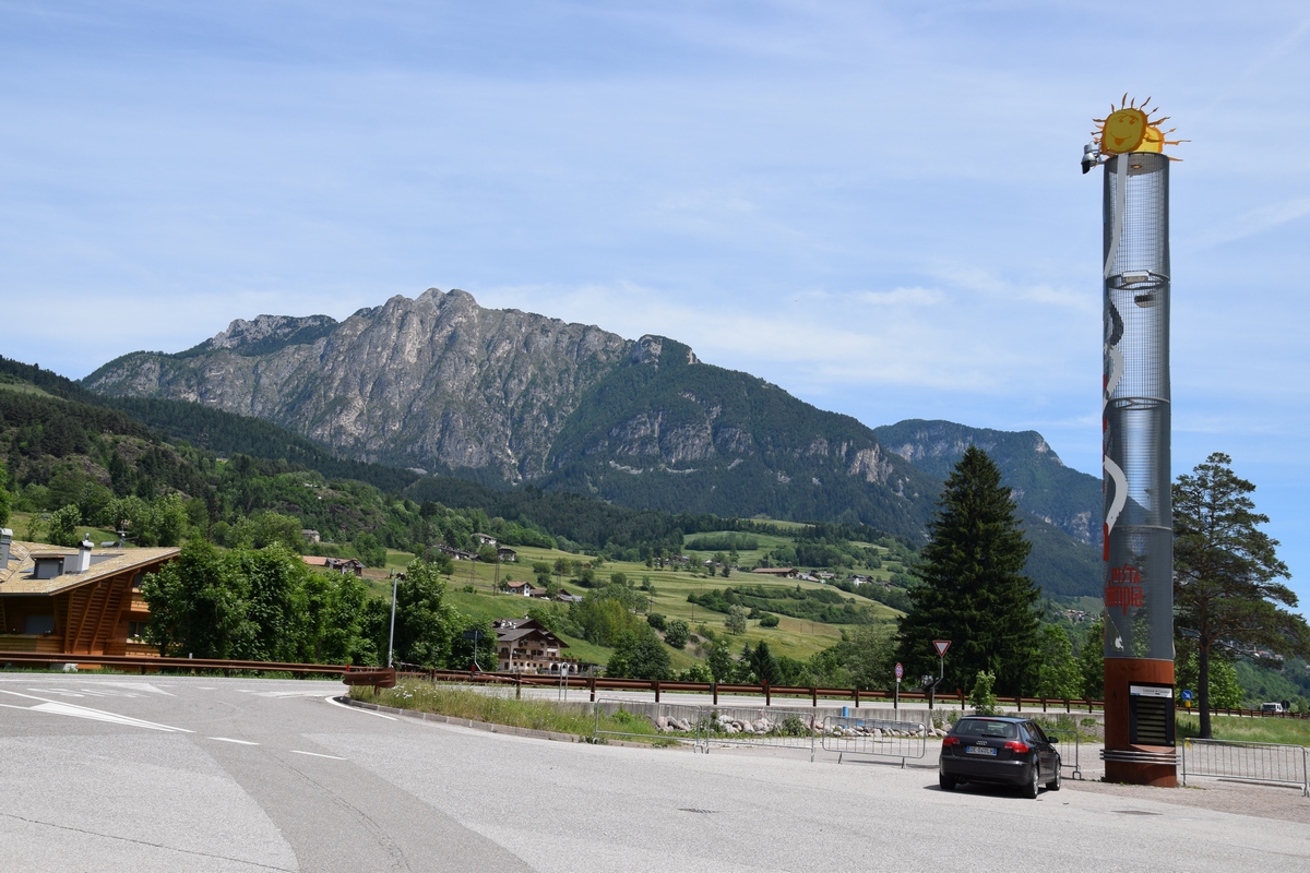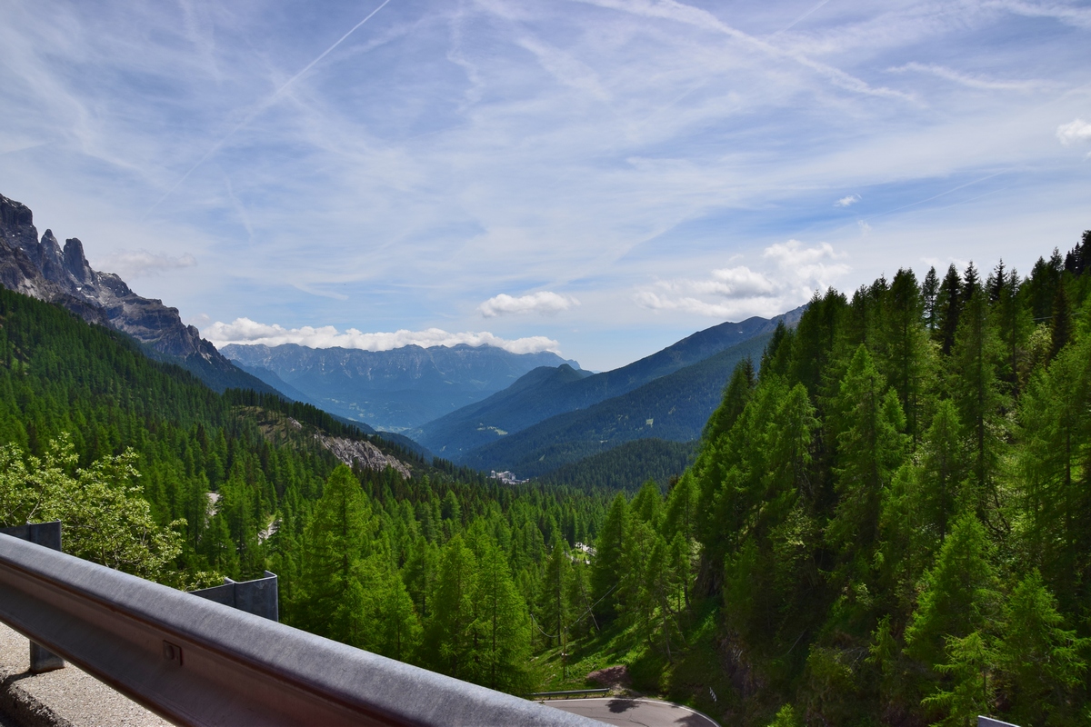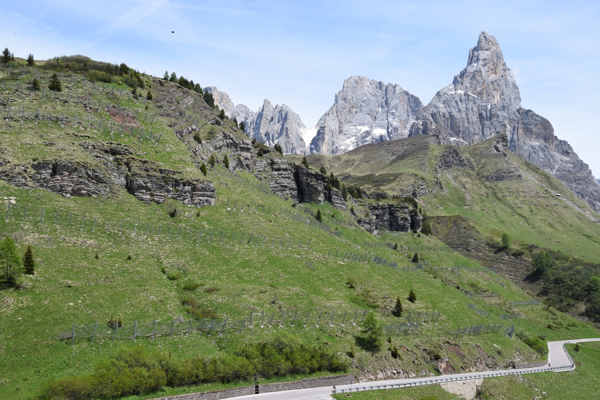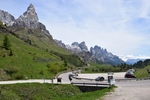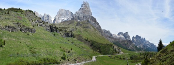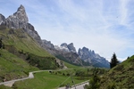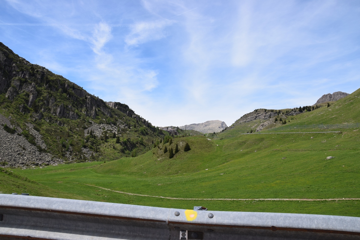 Verder rijden we de Passa Rolle op. Deze is 1984 m hoog. Als we boven komen is het 16 graden. Het is mooi weer de zon schijnt. Hoe lager we komen hoe hoger de temperatuur. De route voert ons nu terug naar de camping. Maar de weg is afgesloten door werkzaamheden. Nu moeten we weer een heel stuk binnendoor. Het is achteraf wel een hele mooie route. We zien weer heel veel. Zo gaan we richting camping.