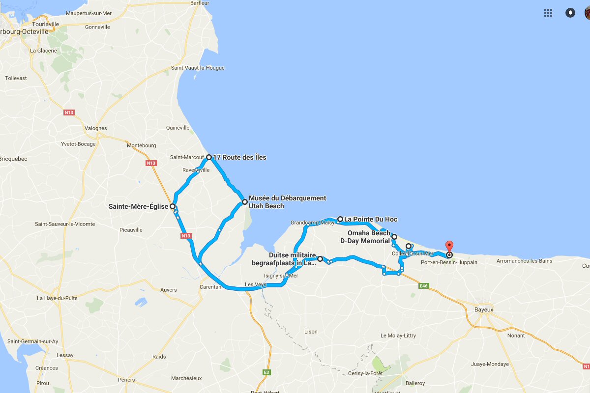Verslag van Camping Port’land – Omaha Beach – Point Du Hoc – Utah Beach – Sainte-Mère-Église – Cimetière militaire allemand de La Cambe – Normandy American Cemetery Colleville-sur-Mer (130 Km) De route: Vorige dag Volgende dag