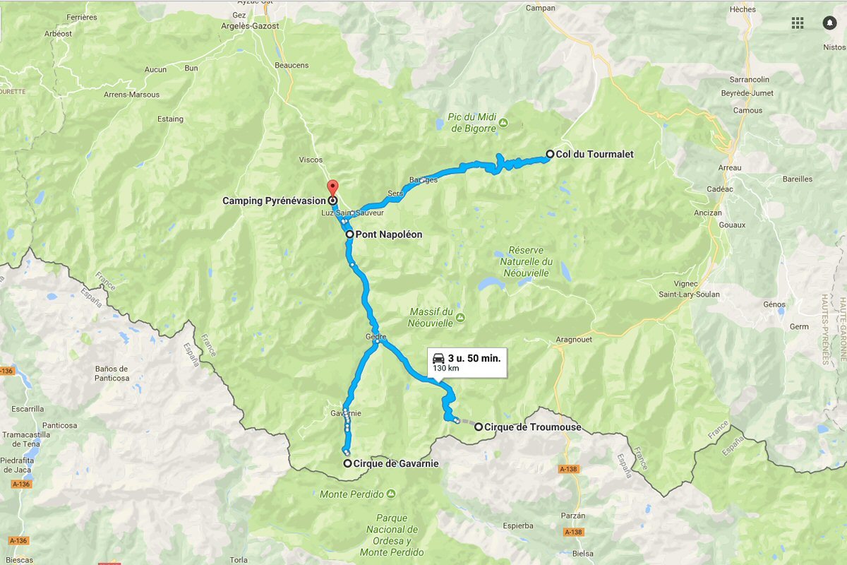 Verslag van Camping Pyrénévasion – Pont Napoléon – Cirque de Gavariere – Le Cirque de Toumouse – Col du Tourmalet (130 Km)