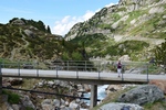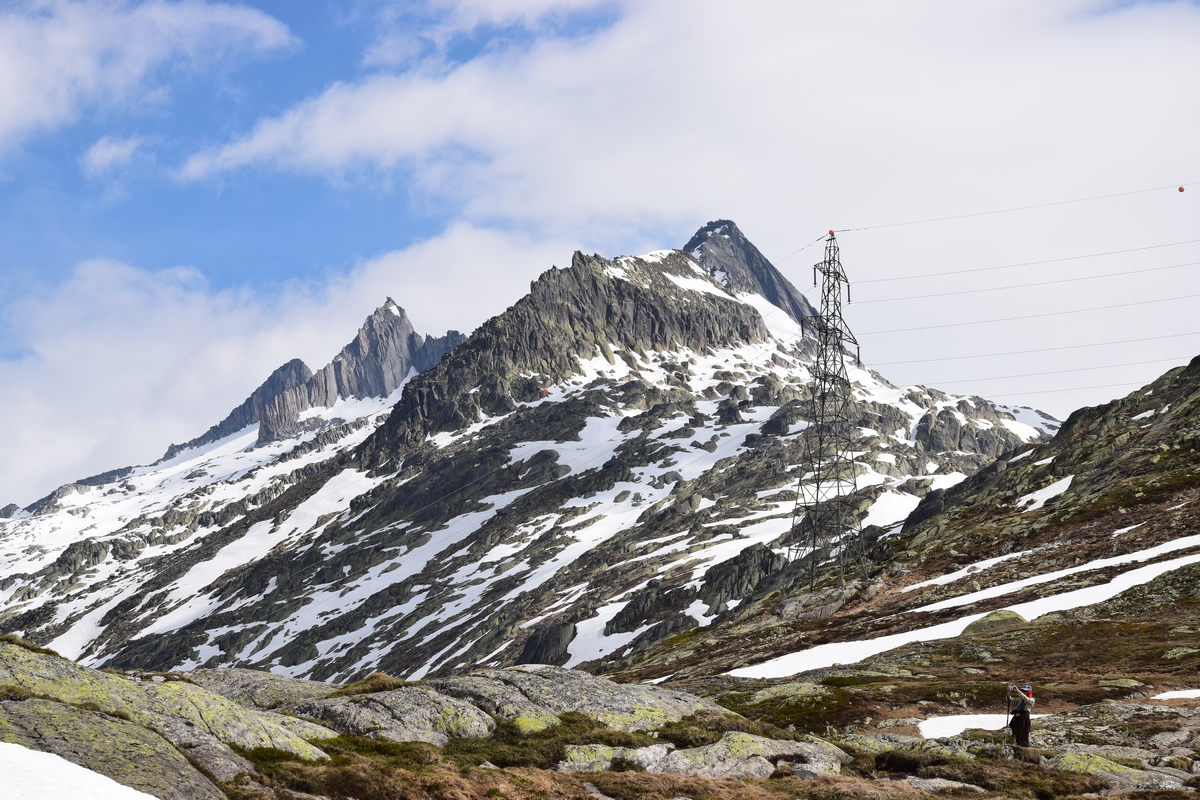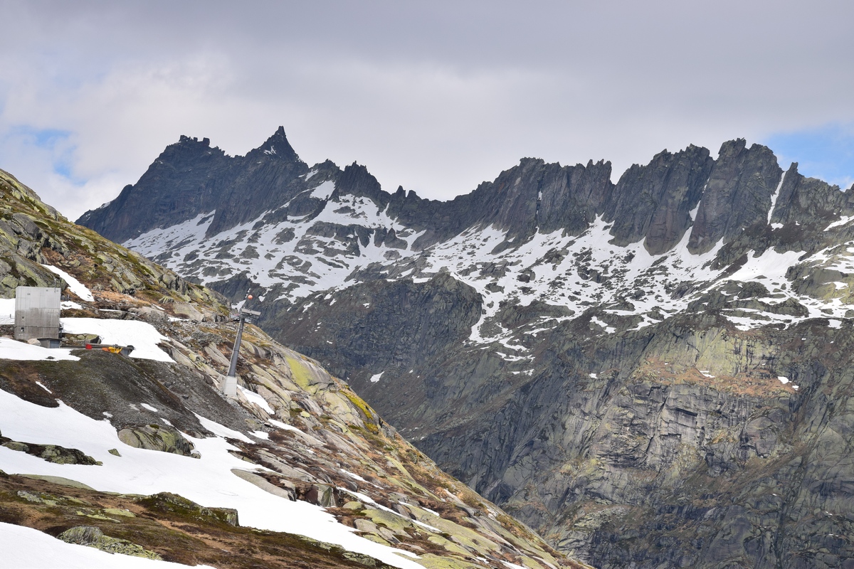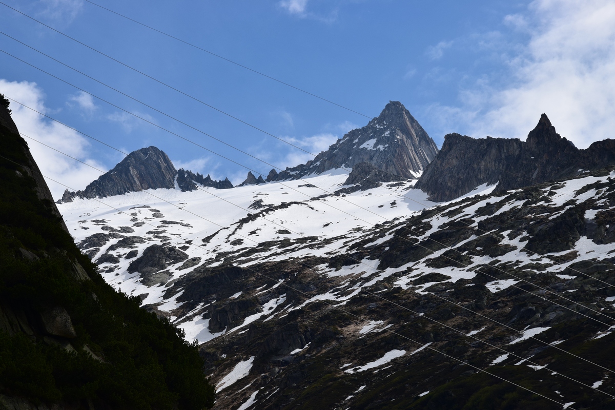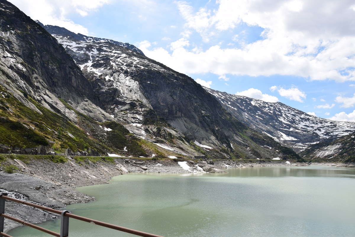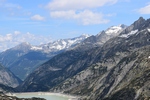Grimselsee / Räterichsbodensee Vanuit het noorden kan de pashoogte bereikt worden via het Haslital. Vanuit Innertkirchen moet over een afstand van 25 kilometer een hoogteverschil van bijna 1500 meter overwonnen worden. De weg is goed uitgebouwd, breed en nergens bijzonder steil. Bij Handeck voert sinds 1926 de steilste kabeltrein van Europa, de Gelmerbahn naar de Gelmersee en overspant een hangbrug (Handeckfallbrücke) het op deze plaats zeer smalle dal. Nabij de pashoogte liggen drie grote stuwmeren: de Grimselsee, de Räterichsbodensee en de Oberaarsee. Deze laatste is via een zes kilometer lange zijweg te bereiken. In dit meer wordt het smeltwater van de Oberaargletsjer opgevangen die op de oostflank van de 4.274 meter hoge Finsteraarhorn ligt. Het hospiz van de Grimselpas ligt op een rotspunt op een schiereiland in de Grimselsee op 1.980 meter hoogte, van waaruit men ook de Rhônegletsjer ziet liggen.