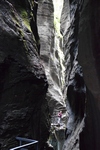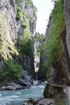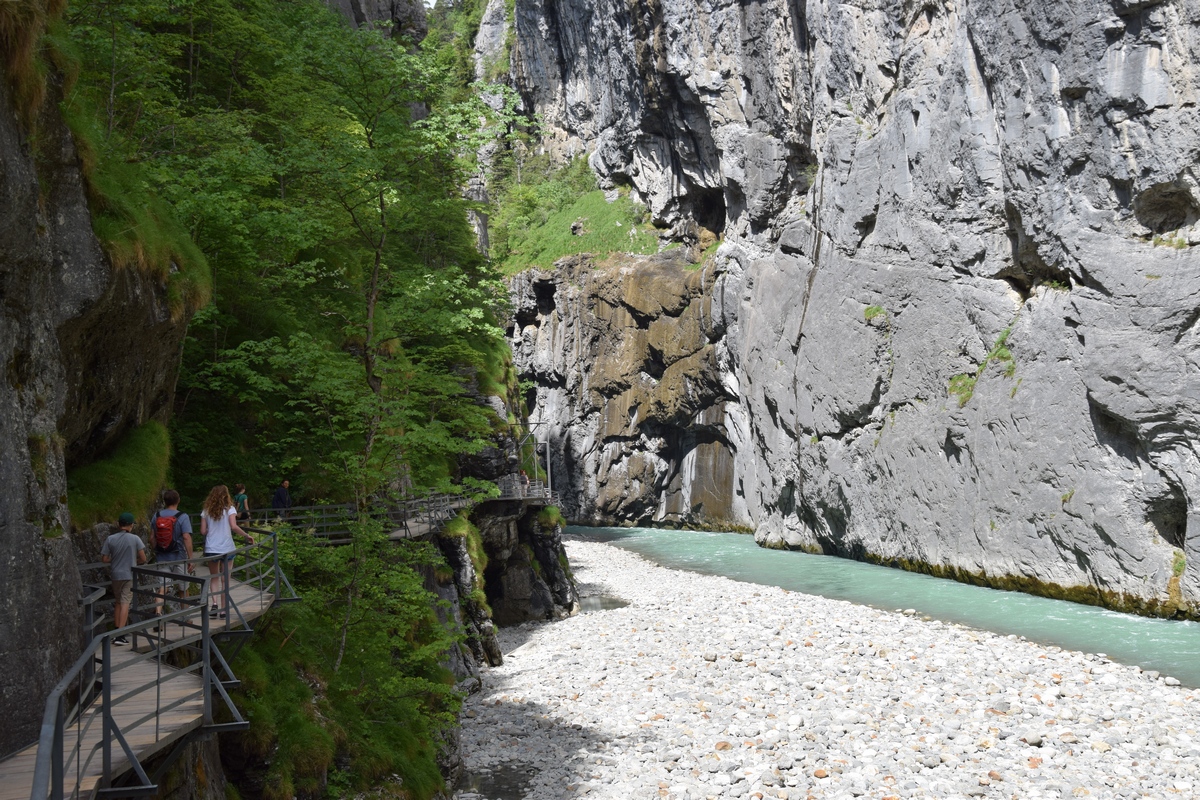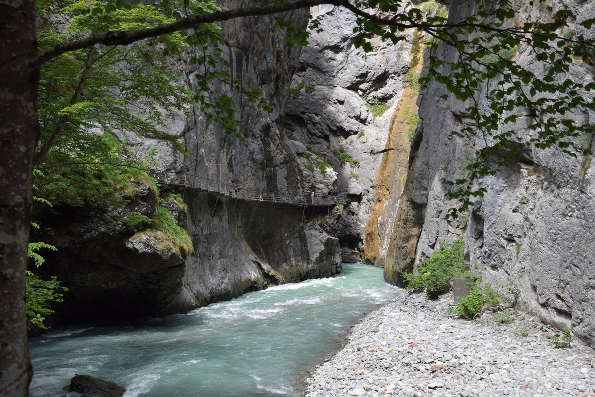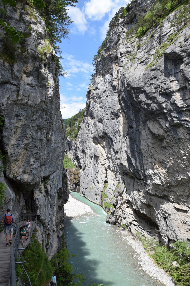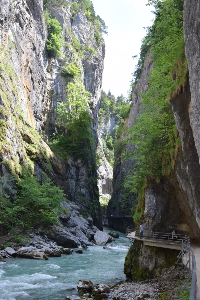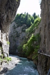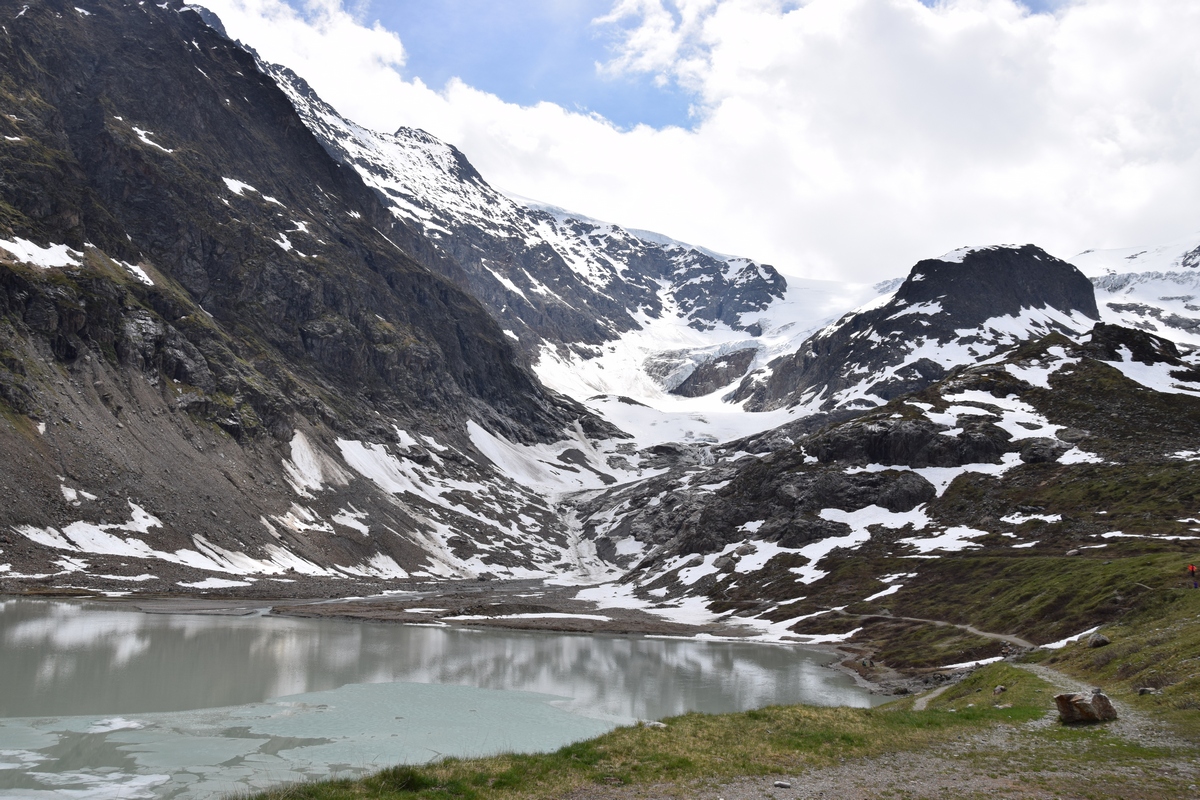 Grimselsee / Räterichsbodensee Vanuit het noorden kan de pashoogte bereikt worden via het Haslital. Vanuit Innertkirchen moet over een afstand van 25 kilometer een hoogteverschil van bijna 1500 meter overwonnen worden. De weg is goed uitgebouwd, breed en nergens bijzonder steil. Bij Handeck voert sinds 1926 de steilste kabeltrein van Europa, de Gelmerbahn naar de Gelmersee en overspant een hangbrug (Handeckfallbrücke) het op deze plaats zeer smalle dal. Nabij de pashoogte liggen drie grote stuwmeren: de Grimselsee, de Räterichsbodensee en de Oberaarsee. Deze laatste is via een zes kilometer lange zijweg te bereiken. In dit meer wordt het smeltwater van de Oberaargletsjer opgevangen die op de oostflank van de 4.274 meter hoge Finsteraarhorn ligt. Het hospiz van de Grimselpas ligt op een rotspunt op een schiereiland in de Grimselsee op 1.980 meter hoogte, van waaruit men ook de Rhônegletsjer ziet liggen.