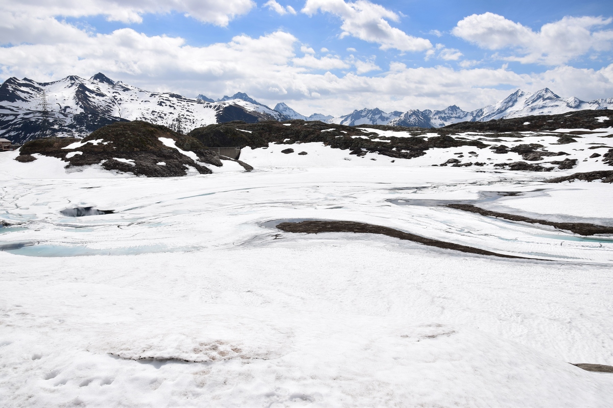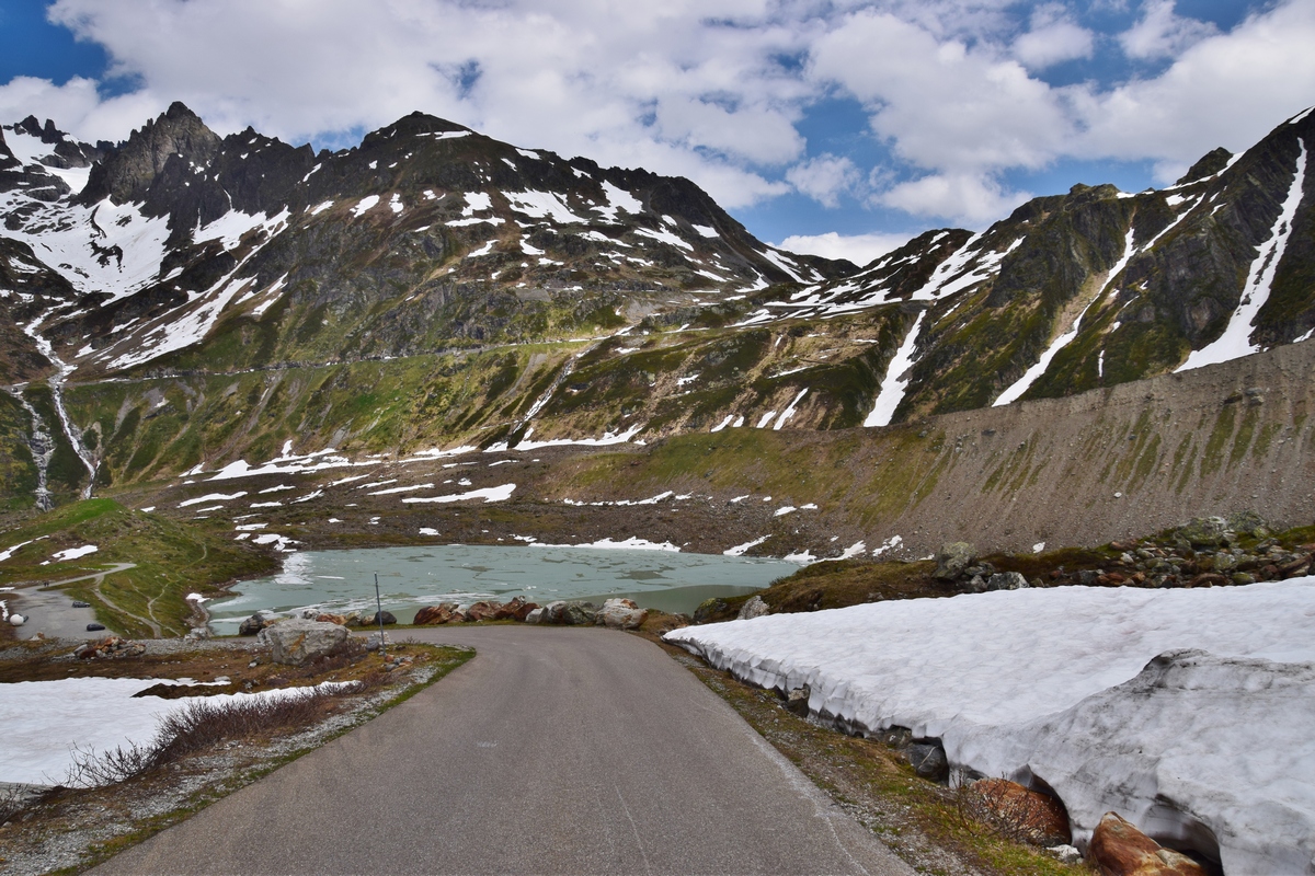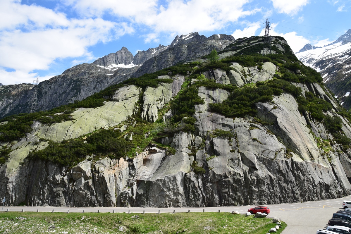 Op de kale pashoogte ligt de diepblauwe Totensee en staat een aantal gebouwen waaronder twee hotels en een kleine kapel. De afdaling richting Gletsch is maar kort, namelijk vijfenhalve kilometer. In Gletsch takt een weg naar links af richting Andermatt die over de Furkapas voert. De Grimselpas wordt vaak in combinatie gereden met de Furkapas en Sustenpas. Samen vormen deze de, bij toeristen populaire, Driepassen-tocht.