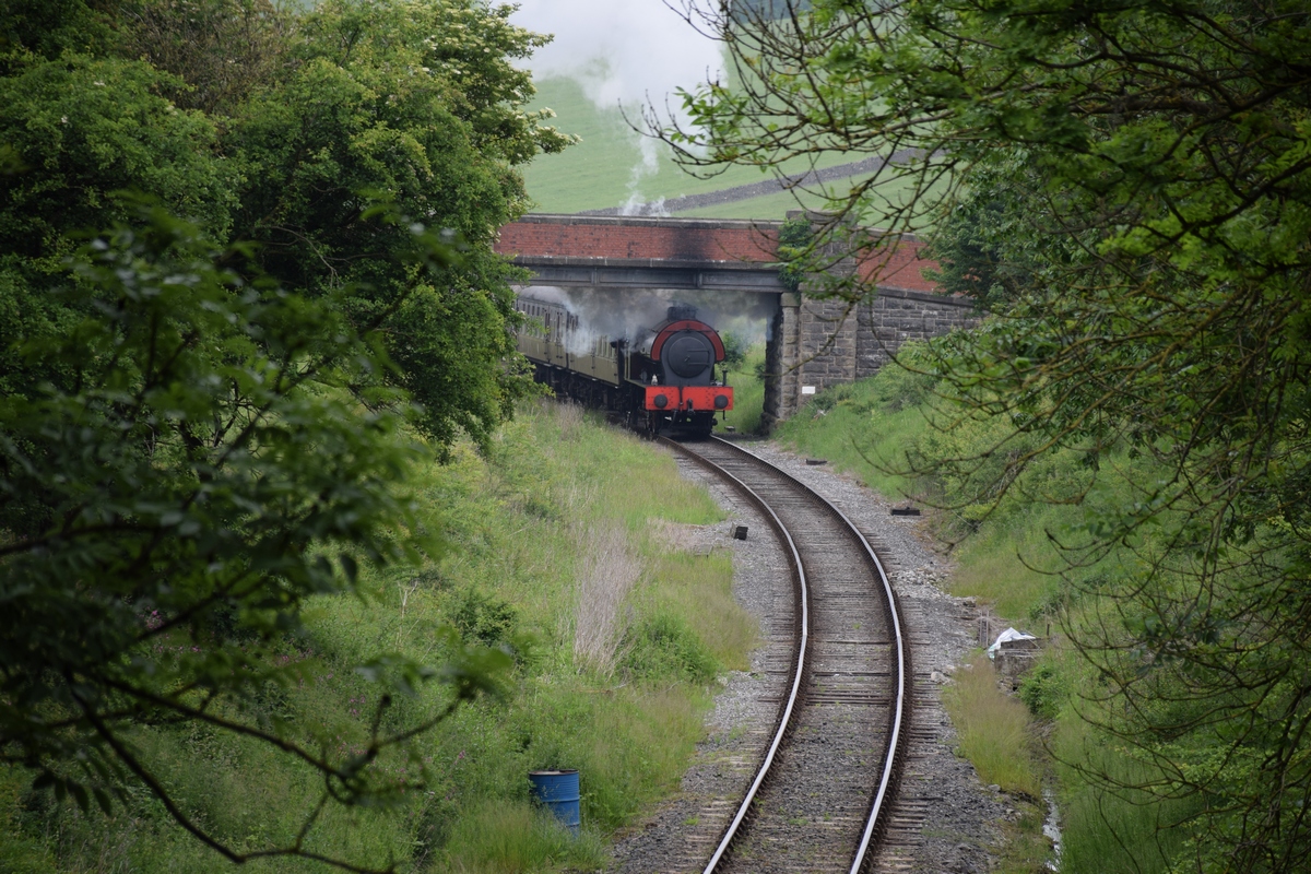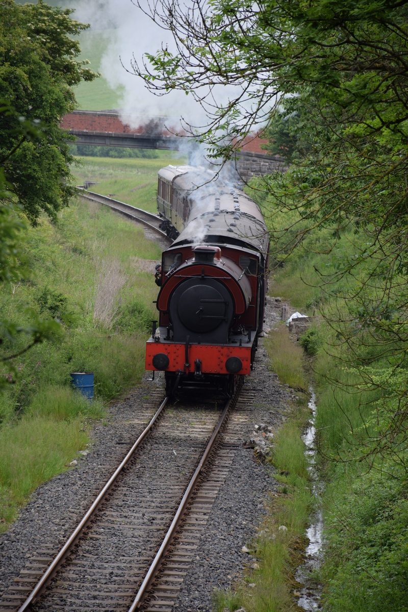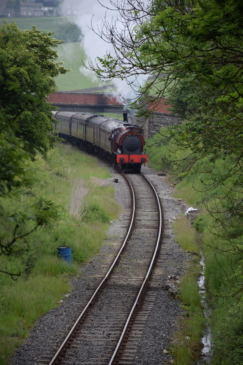 Om 11:00 uur starten we. Eerst willen we naar een stoomtrein gaan kijken. Balton Abby Steamtrain. Na even zoeken hebben we het punt gevonden waar de trein komt. Nog even in de auto te hebben gewacht zien we de rookpluim aankomen rijden. Vlug uit de auto en als we boven op de brug staan zien we hem aankomen. Het is niet een hele mooie stoomtrein maar we hebben hem gezien.