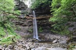 We willen nog naar een waterval. De Hardwar Force. Dit is niet ver. Van de camping. Als we richting waterval rijden zien we donkere wolken aan komen drijven. Als we bij de waterval aankomen is het nog droog. Toch willen we even gaan kijken. In 10 minuten tijd zijn we bij de waterval. Als we foto’s aan het maken zijn begint het te druppen en even later regent en is het aan het onweren. Vlug naar de auto terug lopen. Als we wegrijden besluiten we nog even naar een supermarkt te gaan in het dorpje.