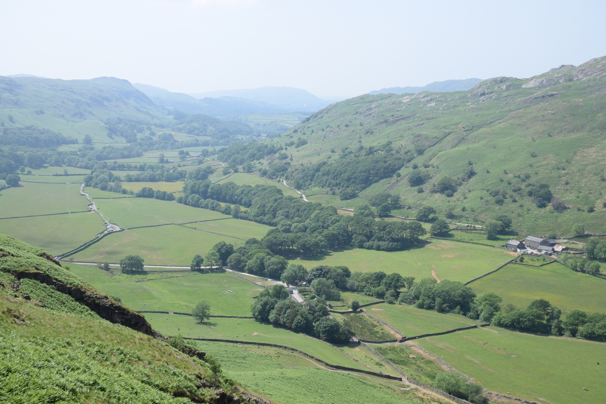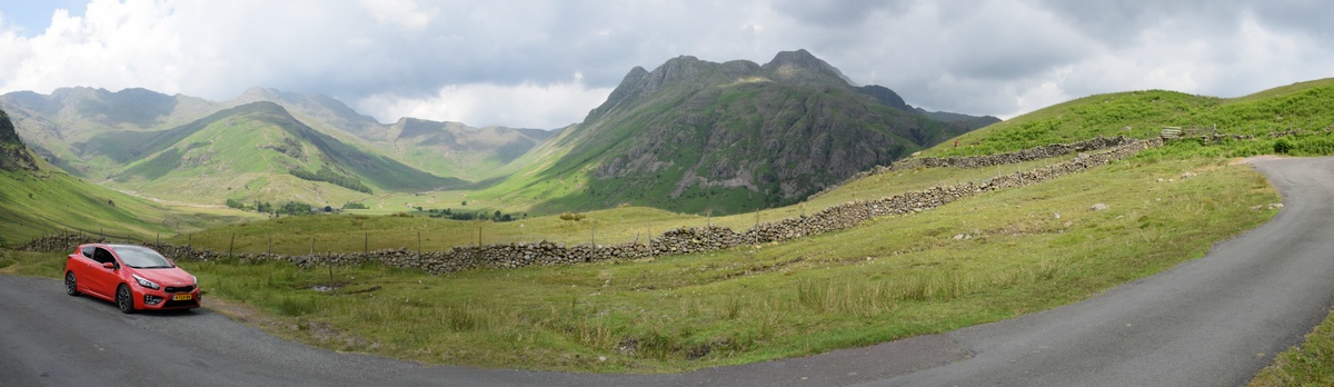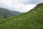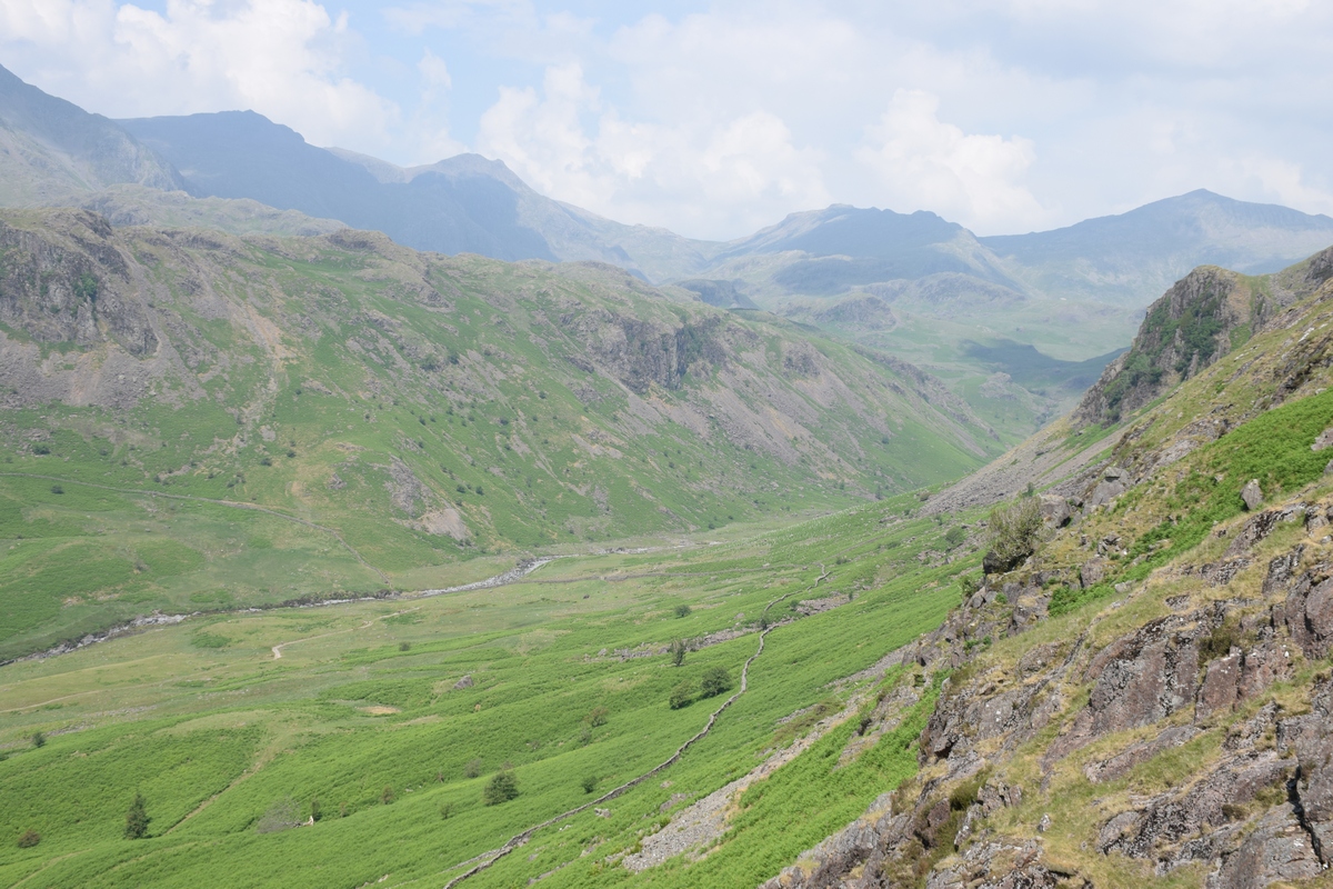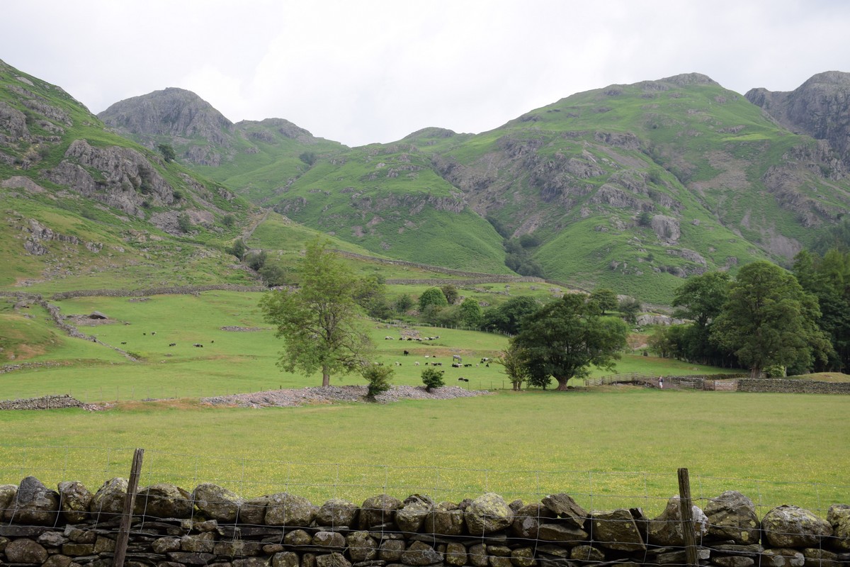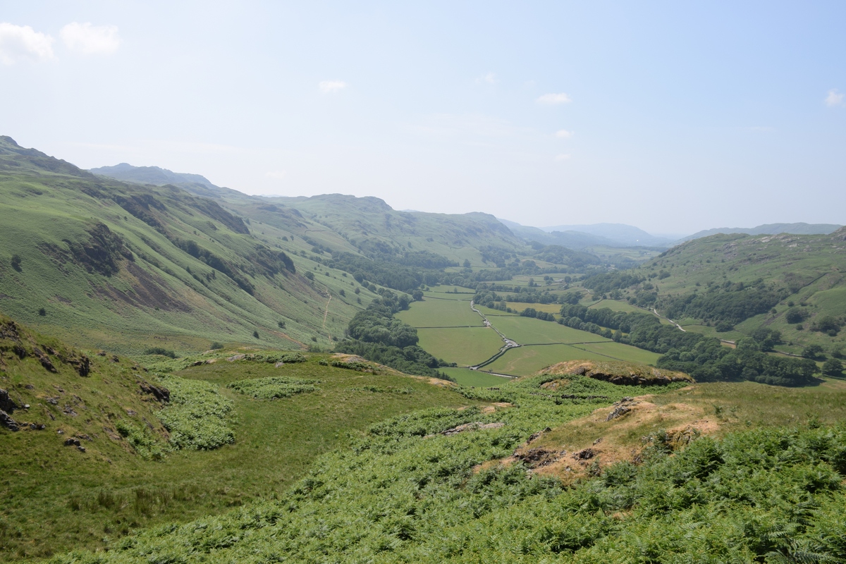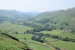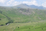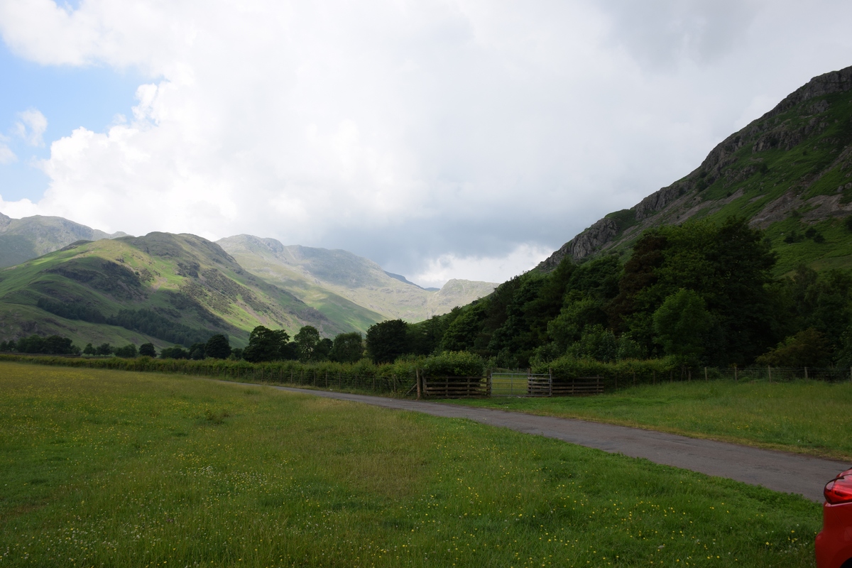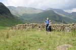 Het is ongeveer 21 graden als we verder rijden. We rijden over wildroosters. Langs de weg in de weilanden lopen en liggen overal schapen met hun jongen. Bij Wynrose Pads is een wegomlegging. Hier moeten we zelf de wegen uitzoeken hoe we verder gaan. Het lukt ons. We komen dan ook nog 30 % hellingen tegen. De bergen gaan tot 1440 meter hoogte. We gaan door naar Hardknottpass. Die gaat ook 30 % omhoog. Overal zien we alleen maar varens. Dan zien we een schaap met lam midden op de straat. De ooi laat daar rustig het lam drinken.