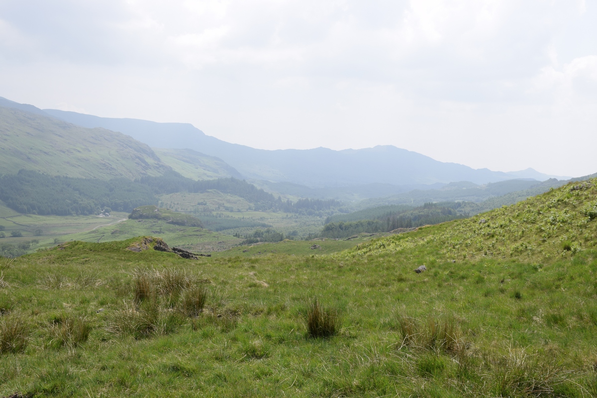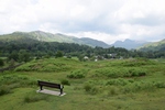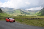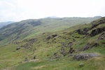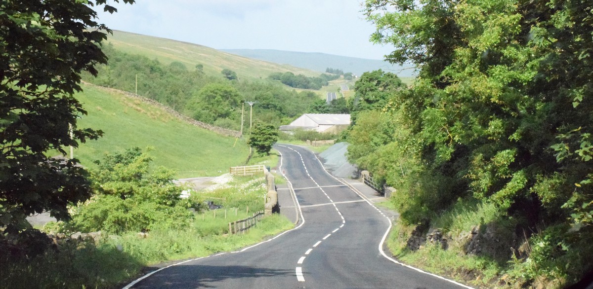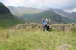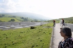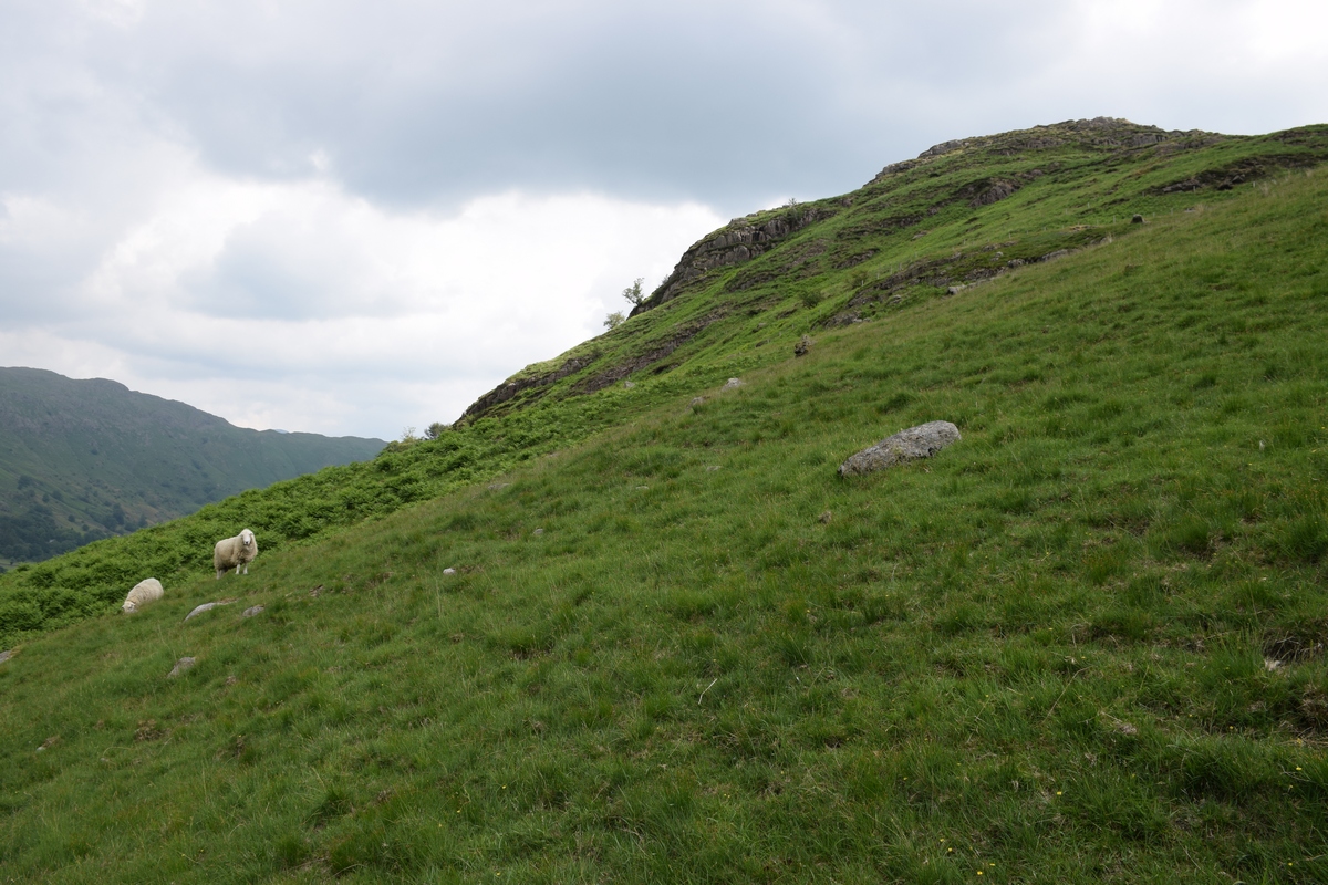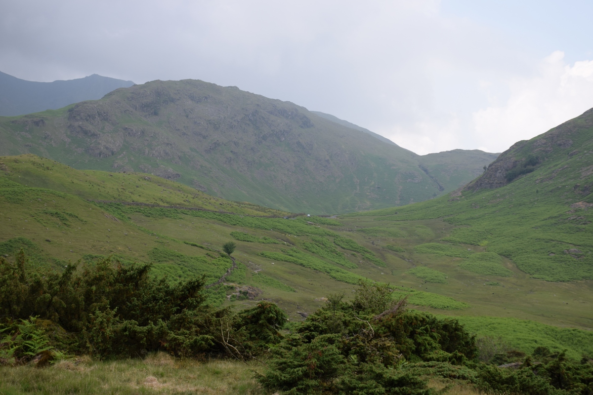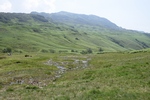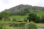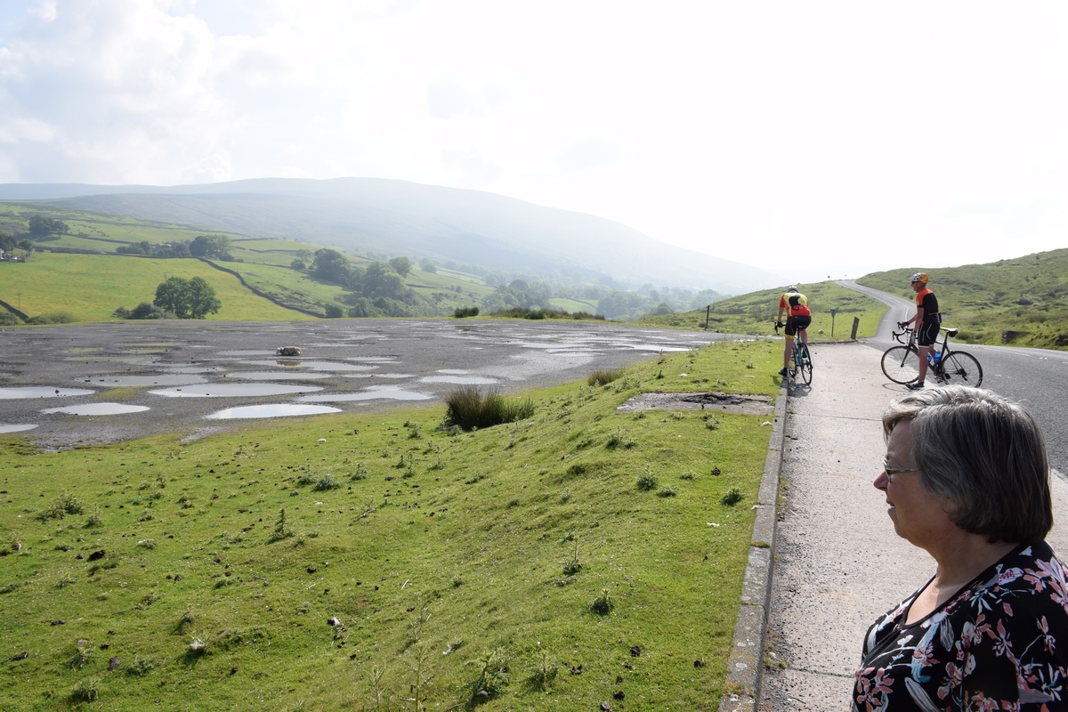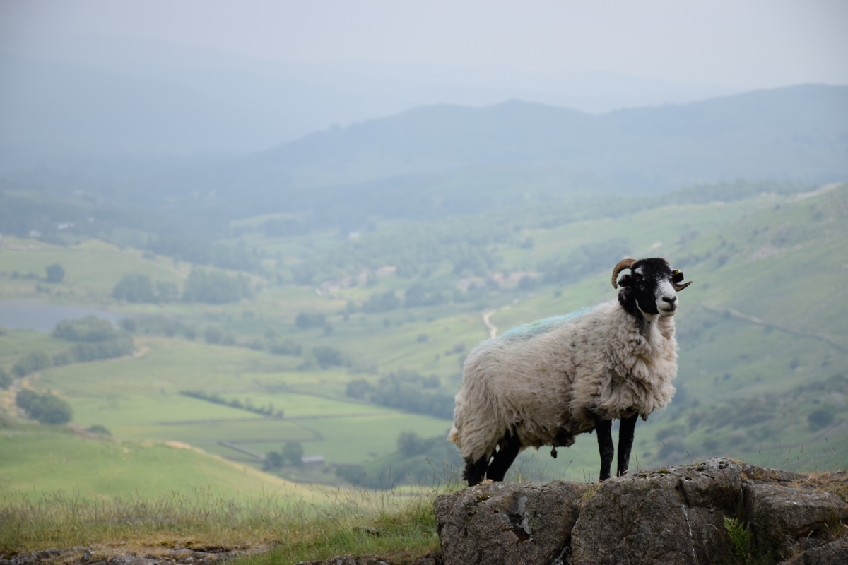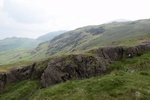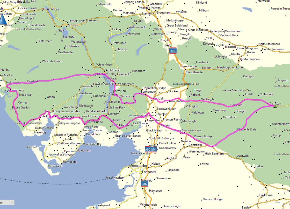 Het is ongeveer 21 graden als we verder rijden. We rijden over wildroosters. Langs de weg in de weilanden lopen en liggen overal schapen met hun jongen. Bij Wynrose Pads is een wegomlegging. Hier moeten we zelf de wegen uitzoeken hoe we verder gaan. Het lukt ons. We komen dan ook nog 30 % hellingen tegen. De bergen gaan tot 1440 meter hoogte. We gaan door naar Hardknottpass. Die gaat ook 30 % omhoog. Overal zien we alleen maar varens. Dan zien we een schaap met lam midden op de straat. De ooi laat daar rustig het lam drinken.