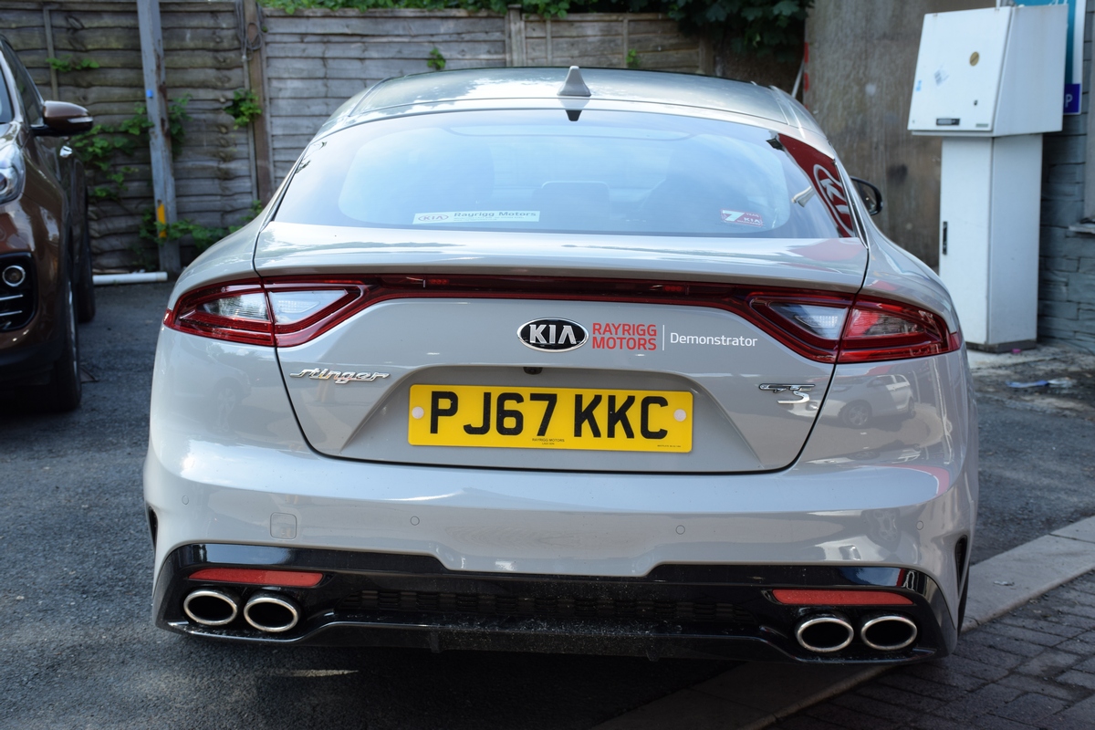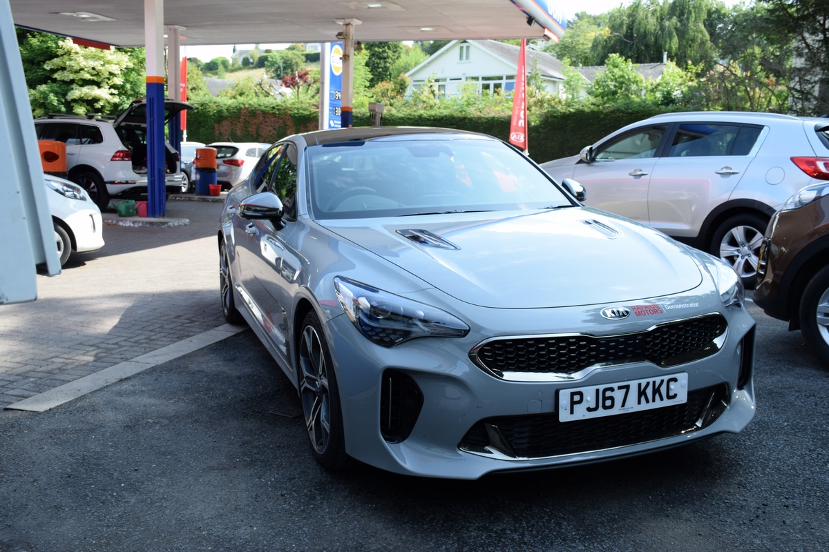 We zijn bij een KIA garage. De eigenaar komt met Mels in gesprek en even later zit Mels in een KIA Stinger 3,6 l V6 die alle opties heeft die hij maar kan hebben. Een super mooie auto.