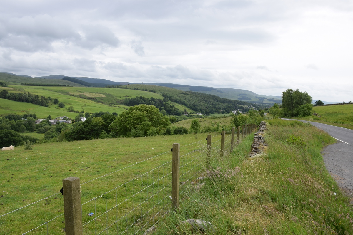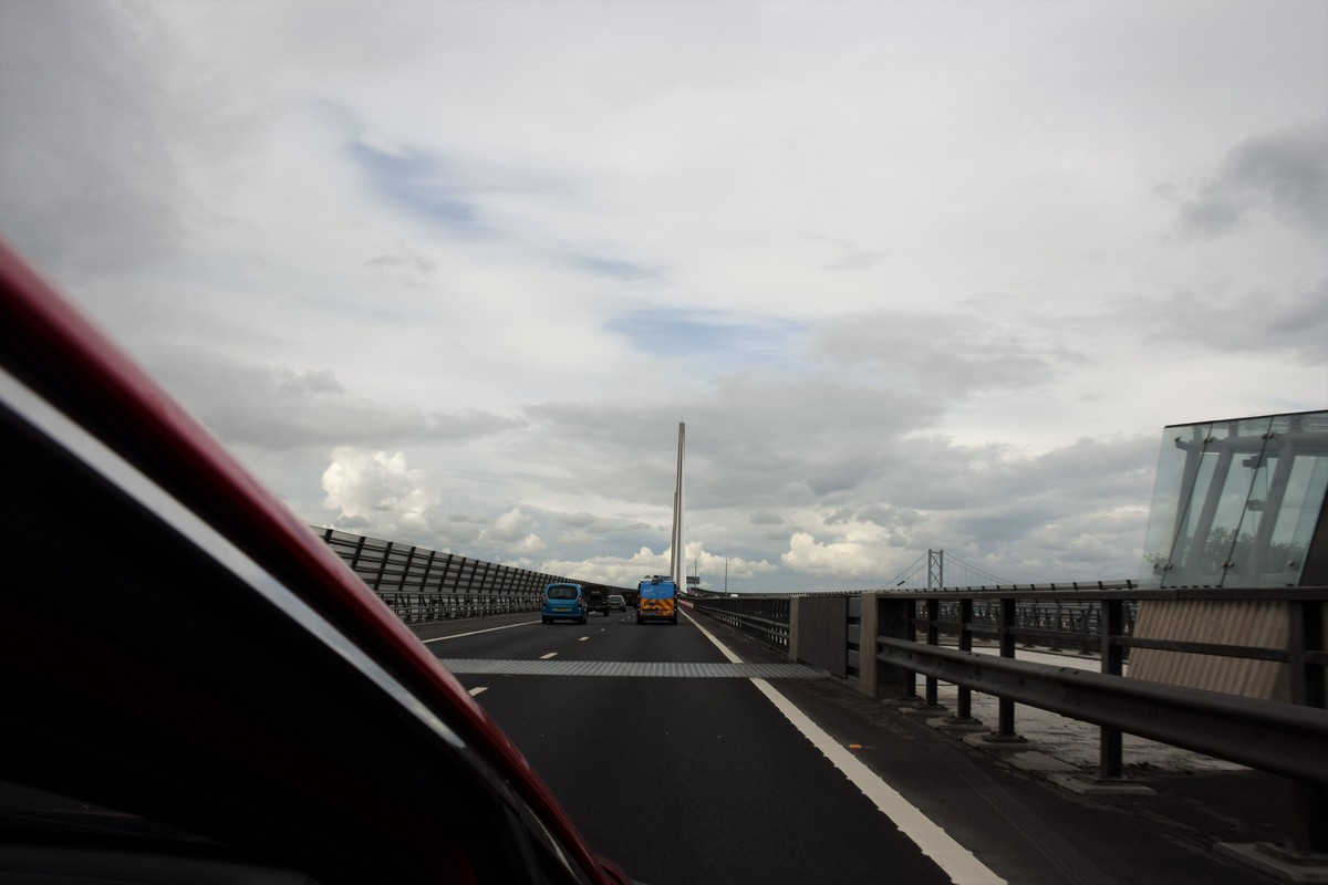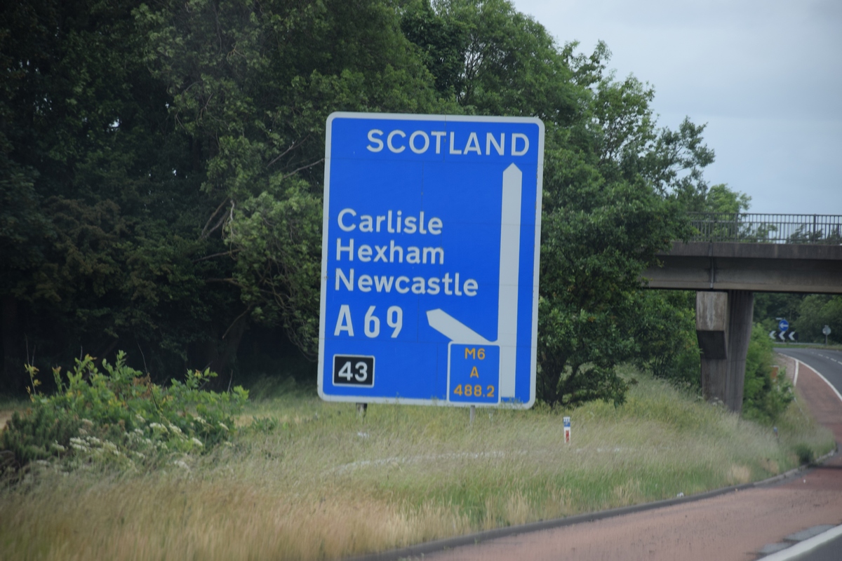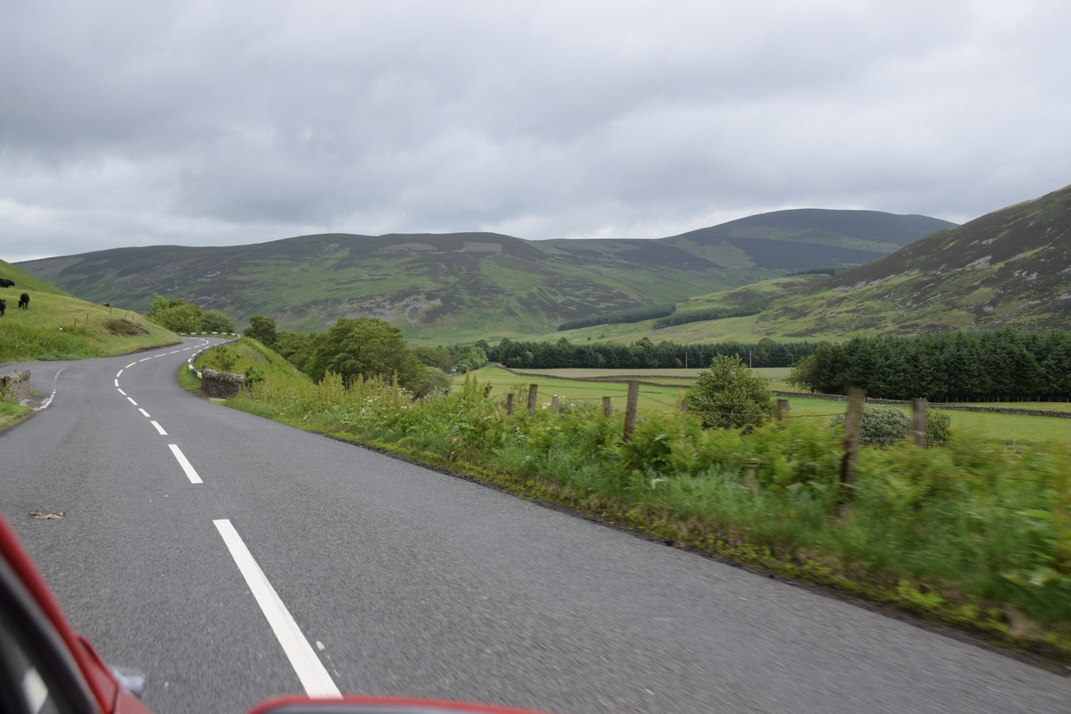 We vertrekken vandaag naar Schotland. Na een redelijke nacht want het is toch weer even wennen aan het bed. De storm Hector is weg , het is wel nog bewolkt. We ontbijten, pakken de auto in en vertrekken richting Schotland. Het is ongeveer 9:00 uur als we aan rijden. Als we volgens de navigatie doorrijden zullen we er om 14:00 uur zijn. Maar ons kennende stoppen we nog wel verschillenden keren om foto’s te maken, van uitzichten genieten, koffie drinken en ook om te tanken. We zien onderweg al verschillende dagen “buizen” in de velden staan.
