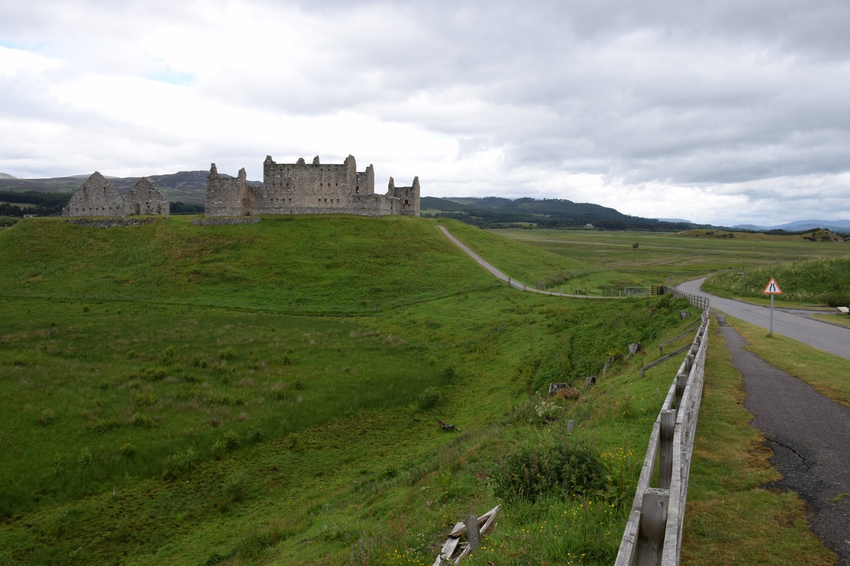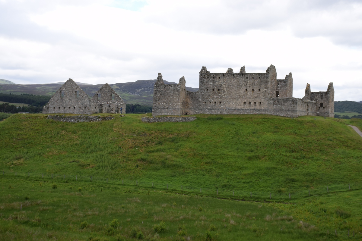 We zien een ruïne. Ruthven Barracks is de ruïne van een 18e -eeuwse kazerne bestaande uit een barakkencomplex en stallen voor 28 paarden. De kazerne werd verwoest door de Jacobieten in 1745. Het complex staat onder beheer van Historic Scotland. Er konden zo’n 60 soldaten verblijven om de Highlands onder controle van de regering te houden.