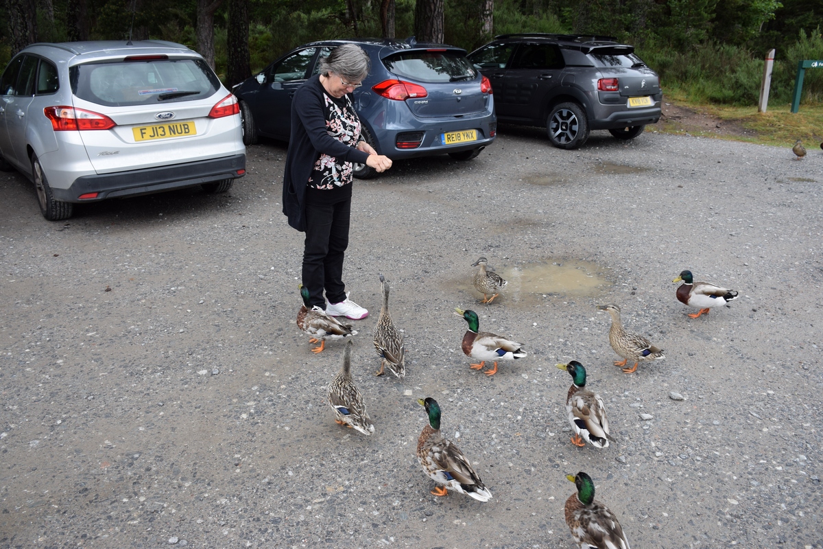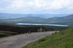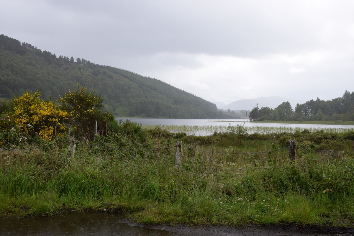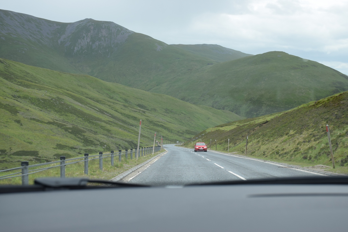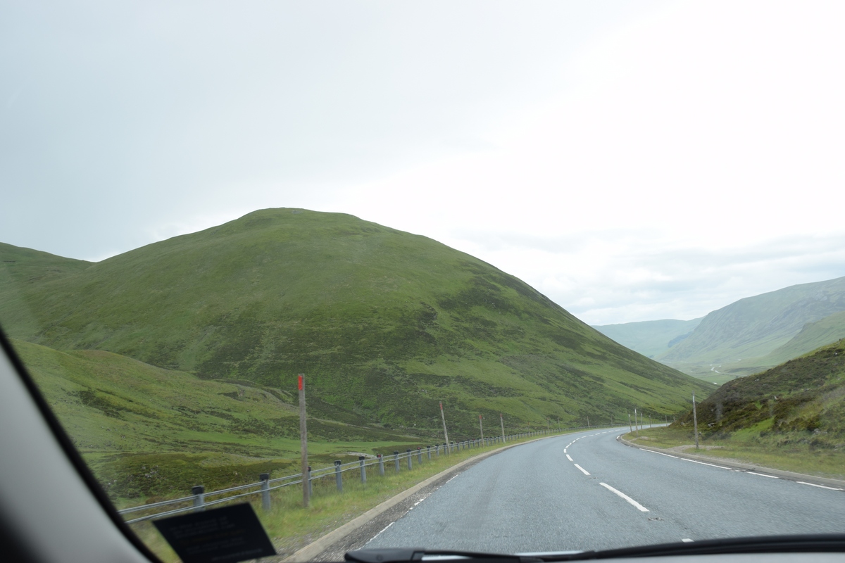 We rijden weer verder onze route. We zien een eekhoorntje de weg oversteken maar niet zo’n grote als we de eerste dagen bij zee hebben gezien. We komen op een hoogte van 641 meter en het is er 7 graden. Dan hebben we nog even regen. Schotland staat erom bekend. We rijden over een pas op 645 meter hoogte en jammer het regent.