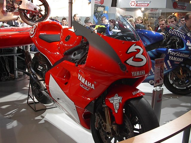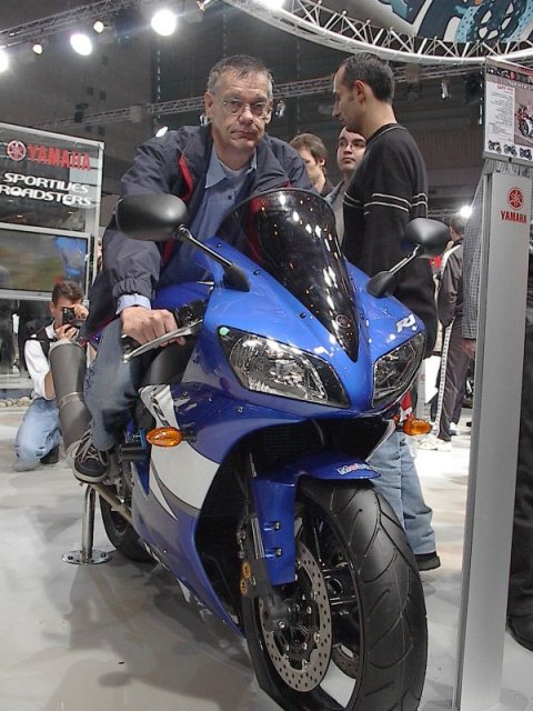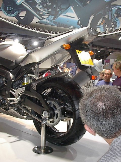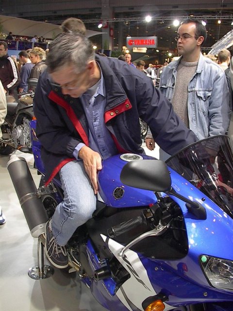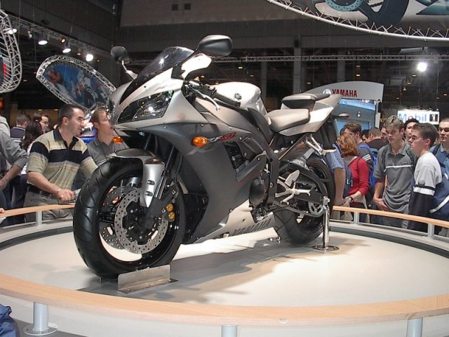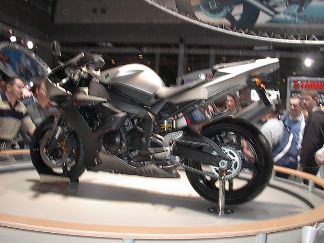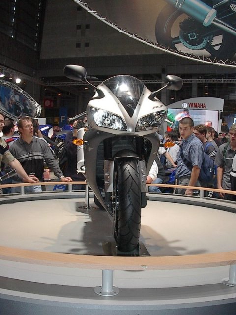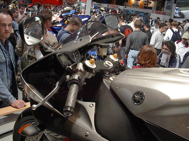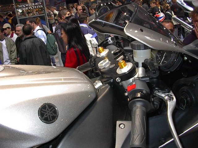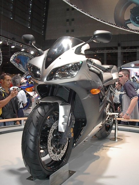 Foto’s van de Motorbeurs in Parijs, speciaal voor de 2002 Yamaha R1 gekomen. Wauw wat een mooie kleur dat grijs. Ook