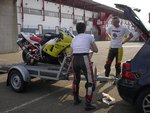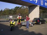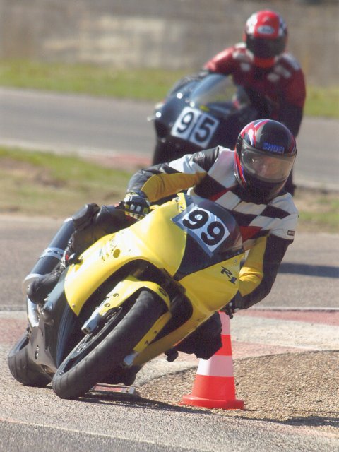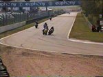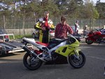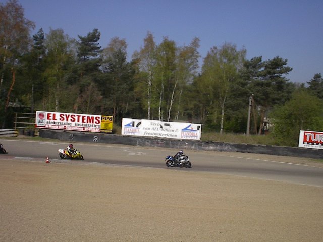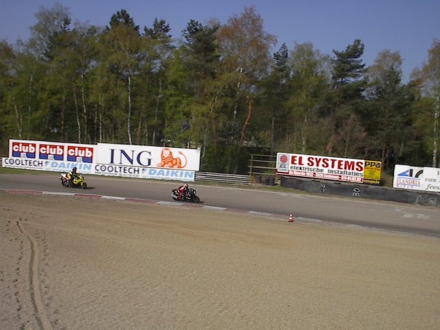 De R1 racer blijkt het goed te doen. De remmen zijn oke en de banden BT012 zijn ook oke ook het insturen valt best mee. Alleen dat rammeltje bevalt me niet. Samen met Rene P. erna gekeken en na wat telefoontjes zijn we tot de conclusie gekomen dat het geen kwaad kan, alleen het maakt wat extra geluid. Vandaar dat ik ook meer dan 95 dB over het rechte stuk ging wat dan weer betekent dat ik of van het gas afmoest en aan de andere kant van de baan moest rijden of sneller schakelen en dus weer een iets langszamere tijd kon neer zetten. Oke al met al was het toch een geslaagde dag. Oh ja mijn snelste rondentijd was plm 2:08 en dat is niet gek voor zo’n oude heer als ik. PS De crash foto’s zijn afkomstig van de videocamera.