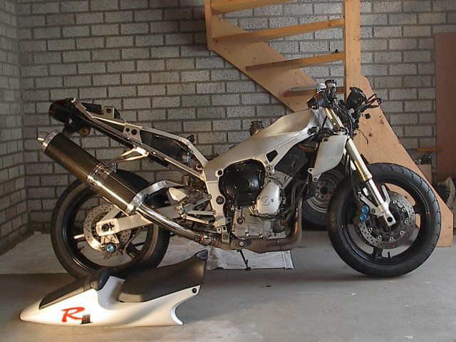 Eerst de Yamaha R1 (1998) weg motor ombouwen tot race motor