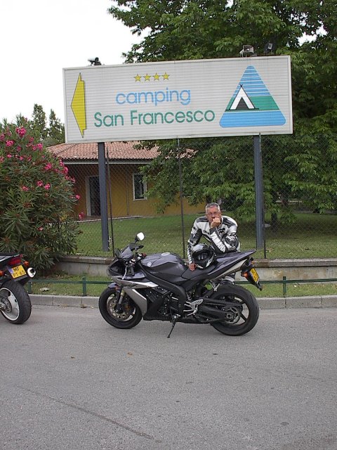 Op 24 en 25 Aug. 2004 hebben Ron van Dongen en Mels een toertocht gemaakt rondom het Gardameer in Italie. Waarom 2 dagen zou men zeggen ??? Op 25 Aug. 2004 toen beide heren slechts 1/3 van de tocht hadden gereden kwam er regen. Dus zijn ze de dag erna weer gaan rijden en toen hebben ze wel de complete tocht gereden. Ook zijn ze effe naar de Camping gegaan waar Mels 20 en 40 jaar geleden gecampeerd heeft, de 1ste keer met zijn ouders en de 2de keer met Toos en Marij. Hij kon het niet na laten om een foto te maken.