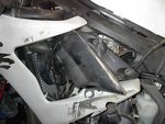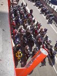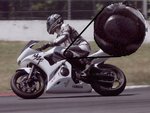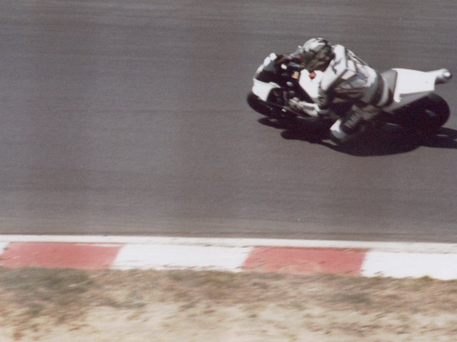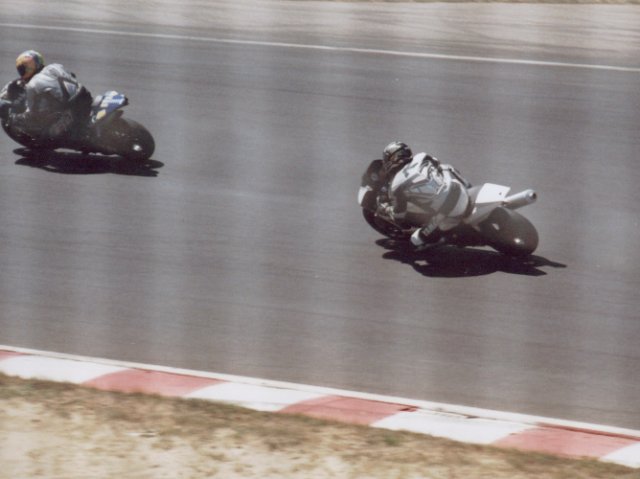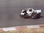 De 4de sessie begon. Na 2 rondjes achter de voorrijder mocht iedereen zijn eigen tempo bepalen. De groep van ca. 50 motoren was verspreidt over het circuit. Mels starte achteraan in de 3 de groep. Voor de chicane bij de sacrements heuvel had hij zijn groep al ingehaald. Gewoon een kwestie van laat en hard remmen. In de verte zag hij de volgende groep, echter dat duurde nog wel een rondje voordat hij erbij was. Het 1ste echte rondje ging in 2:19. In bijna elke bocht haalde Mels wel 2 a 3 cursisten in. Gewoon door het veel later remmen en sneller de bocht uit te komen. Zelfs een Gsxrr 1000, een Aprilia Mile, een Honda 1000 RR en een R1 (in Rossie kleuren) konden Mels niet bij houden. De rondjes gingen sneller en sneller van 2:16 naar 2:09 naar een nieuwe snelste tijd van 2:03,78 en dat met veel verkeer op de baan. Daarna ging het wat langszamer mede door het vele verkeer naar 2:08 en 2:13. Dat was Mels zijn laatste ronde tijd. Het ging snel, nog eventjes wat cursisten inhalen voor de chicane bij start/finish en hé wat is dat een voorrijder met een Honda 1000 RR (fireblade dus) Mels dacht die kan ik hebben. Samen uit accelereren uit de chicane en dan laat in de ankers voor de 1ste linker bocht. Ja Mels remde later, zat er links naast en liet voor de zekerheid rechts minstens 1 meter vrij voor de voorrijder. Samen gingen ze op het instuurpunt af. Echter de voorrijder stuurde iets te vroeg in en Mels moest ook insturen veel te vroeg eigenlijk. Te vroeg bleek want na de APEX begon Mels zijn voorband te glijden en was het gedaan. Met ongeveer 150km per uur smakte Mels tegen het asfalt. Een streep achterlaten van zo’n 30 meter en belande na wat tuimelingen in het grind. GVD dacht hij. Nu is het gedaan met motorrijden. Mels bleef een tijdje stil liggen want zijn rechter elleboog deed ontzettend zeer. Na enkele minuten verscheen de ambulance en de dokter. Na wat eerste controlles ging Mels eerst zitten en werd daarna voorzichtig overeind geholpen. Toen Mels omhoog keek zag hij Lex staan boven op de berg, hij had alles met Glenn zien gebeuren. De duim ging omhoog om Lex te zeggen dat het wel gaat. De ambulance in en naar de rode kruis post gebracht op het circuit. Toos stond Mels al op te wachten, in de rode kruis post werd nogmaals naar de elleboog nagekeken gelukkig alles blijkt oké te zijn. Alleen een flink dikke bult zat erop. Na een perfect verzorging kon Mels terug naar de auto gaan. Echter de motor moest tot het einde blijven staan langs het circuit.