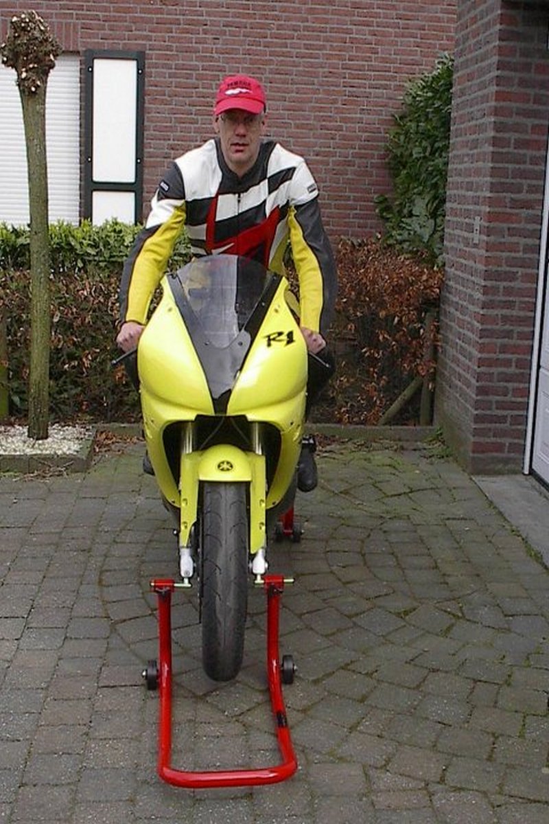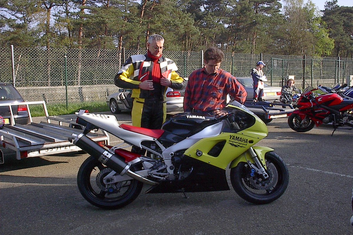 Mels ging dus zoeken op internet voor een motor, na veel zoeken is hij uit gekomen bij een Yamaha YZF R1 uit 1999 met slechts 12.500 Km op de teller. Later bleek dat het geen 1999 model was maar een 2000 model met de kuipdelen van een 1999. Origineel zou de motor blauw geweest zijn. Aan meer details is Mels niet gekomen. Eenmaal in zijn bezit is Mels gaan zoeken naar beschadigde onderdelen, want een speciale race kuip zou duurder zijn. Ook heeft Mels speciaal voor het circuit rijden een motortrailer gekocht. Nadat alle beschadigde kuipdelen ontdaan waren van stickers, vet en olie heeft Mels alles in een mooi kleurtje gespoten t.w. geel, zwart, rood en wit. Waarom juist die kleuren ?? Mels heeft natuurlijk ook een ander motorpak gekocht in dezelfde kleuren. Op de race pagina staan wat foto’s en een verslag van de eerste circuit dag op Zolder.