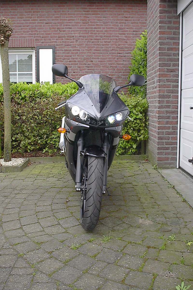 Jullie weten misschien dat Yamaha elke 2 jaar een nieuw model uit brengt van de YZF R1. Ook in 2004 was dit het geval. Voor Mels dus weer een reden om een nieuwe te kopen. Het 2002 model had al iets meer dan 10.000 km erop zitten. Wat zou er nu weer gewijzigd zijn t.o.v. het vorige model. Mels gaat eind. Nov. 2003 naar de Motorai om daar te kijken naar het nieuwe model (zie de foto’s op de beurzen pagina). Eerst worden de concurenten kritisch bekeken: Honda Fireblade, Suzuki GSX-R 1000, Ducati 999s en de Kawasaki ZX10. Dan ziet hij het nieuwe model staan: wat een pracht en schoonheid. Toen bekeek hij de statistieken: 172 Pk en 172 Kg de eerste motor die een 1 op 1 verhouding heeft. Daarna worden de nieuwigheden bekeken: Kleurstelling, Deltaframe V, stuurdemper, dubbele uitlaat in het kontje, dashboard en tot slot een nog scherpe styling.
