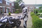 Ooit was de Honda CBR1100xx Super Blackbird (wat een naam hè) de snelste productie motor die ooit gebouwd is. Wat een prachtig model wat een kleur wat een vermogen en wat een topsnelheid. Helaas deze droom bleek van korte duur na 1 dag moest Mels melden dat hij gevallen was, weg droom weg mooie machine weg ???? Het gebeurde op 2 Juli 1999 om plm. 14:20 uur in Venlo. Mels reed de rotonde op voor het station, plotseling remt de auto voor hem schrik, schrik, schrik wat nu, hard remmen kei hard zelfs zo hard dat alles blokkeert. En dan de klap als de motor op het asfalt knalt. Pijn pijn pijn heel veel pijn zijn droom was kapot gesprongen. Omdat de motorzaak, Motoport Venlo, toch in de buurt was, is hij maar effe langs gegaan om de schade op te laten maken. Daar schrokken ze wel effe, nog geen 24 uur tevoren was de motor opgehaald, nu alweer terug!!!!. De schade viel achteraf natuurlijk mee, Fl 1500,- voor een rechter spiegel, onderkuip deel en voorrem hendel (zelf betaald). Een paar dagen rondrijden met de schade was eigenlijk het vervelendste daarna is het eigenlijk nooit meer goed gekomen tussen Mels en zijn Blackbird. Hij heeft het nog wel geprobeerd om alles uit de Blackbird te halen wat erin zat. De topsnelheid van meer dan 300 Km/uur heeft hij net niet gehaald Mels is bij 285 Km/uur blijven steken. De handelbaarheid op bijvoorbeeld het circuit van Zolder België liet ook te wensen over. Toch heeft de Blackbird Mels een mooie tijd bezorgt via internet heeft hij Blackbird vrienden ontmoet met dezelfde interesses. Mels heeft zelfs meegeholpen om een Blackbird dag te organiseren. De drang echter naar sportief rijden werd alsmaar groter.