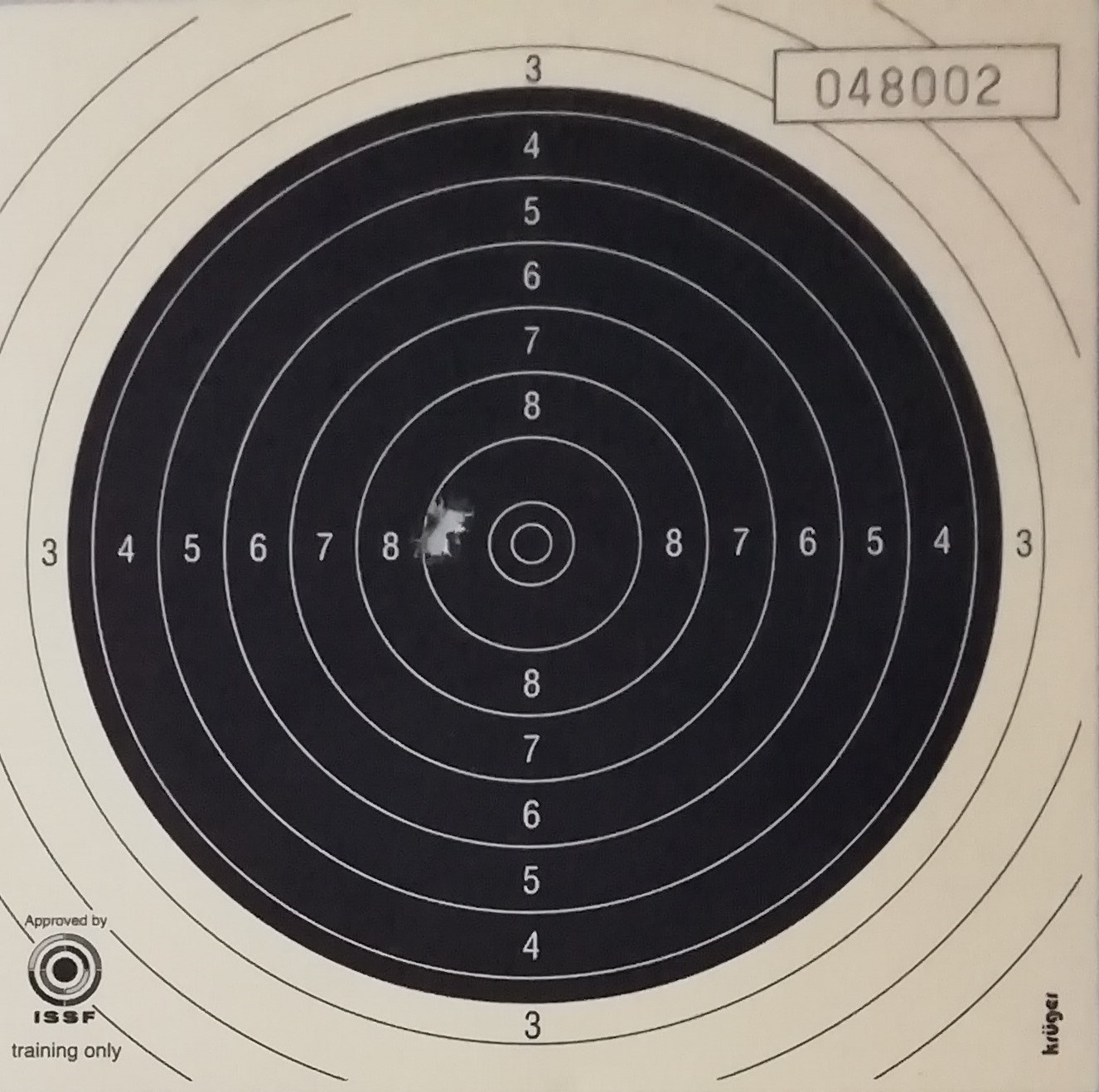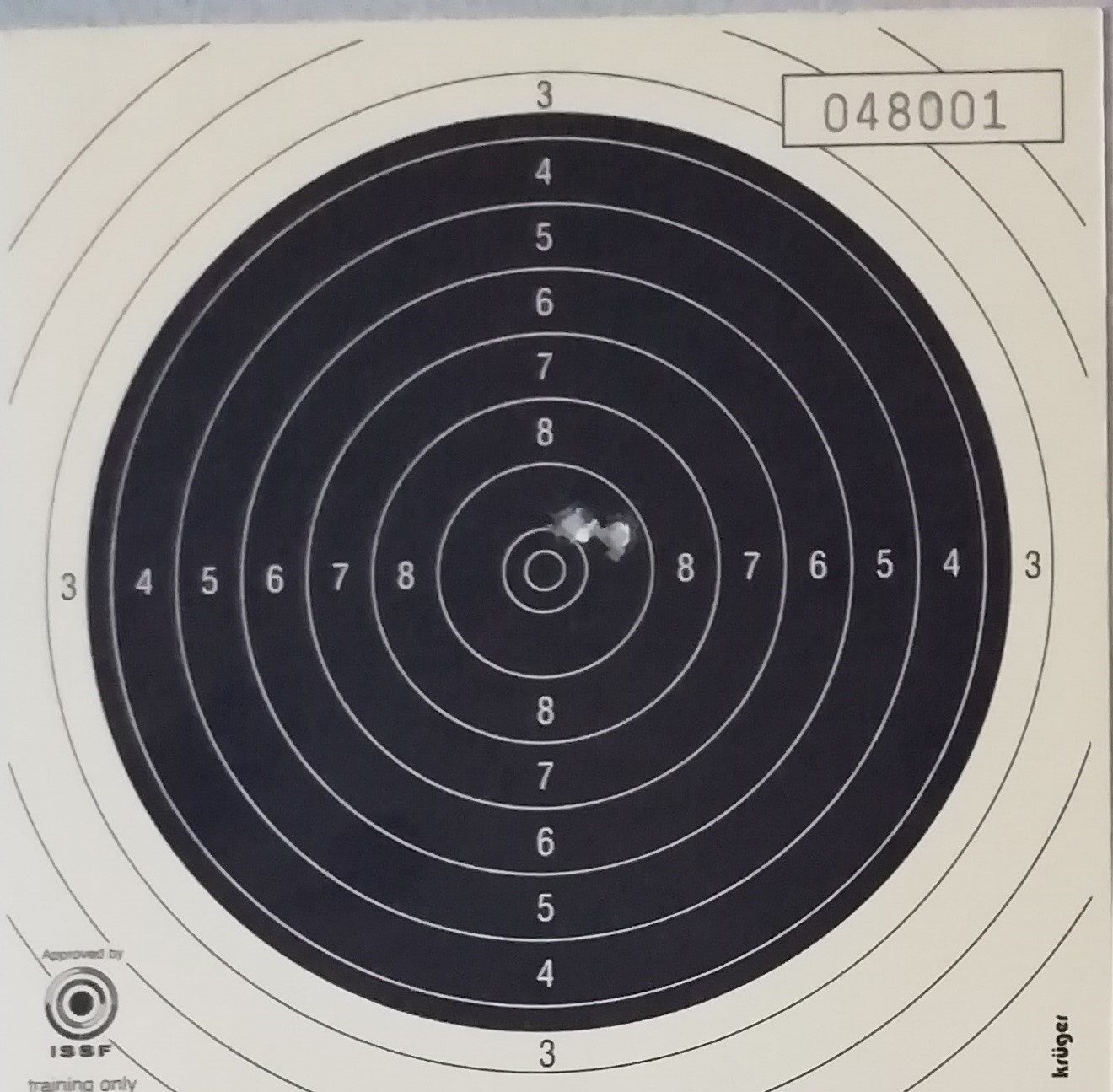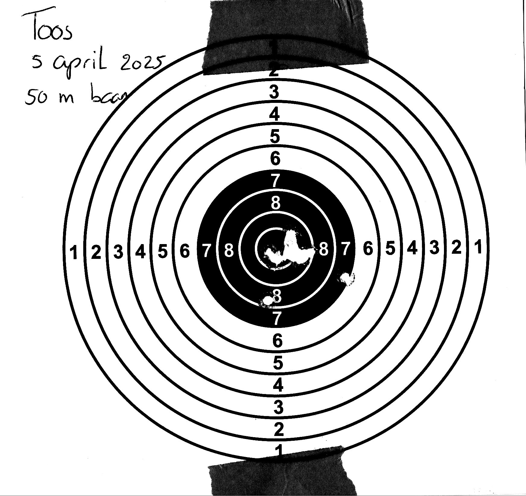 Toos heeft de smaak te pakken, tijdens de "verplichte" schietbeurt, heeft ze een mooi groepje geschoten.