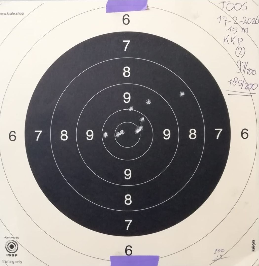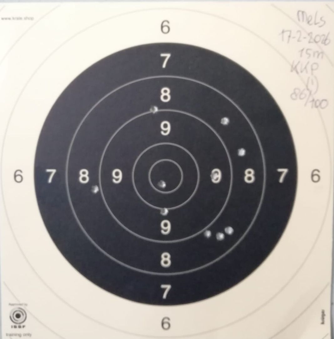 We hebben geschoten op de "Pistool" Baan, dit keer op 15m, eigenlijk een standaard afstand voor KKP Meesterkaart wedstrijden. Of te wel Klein Kaliber Pistool op een speciale kaart.