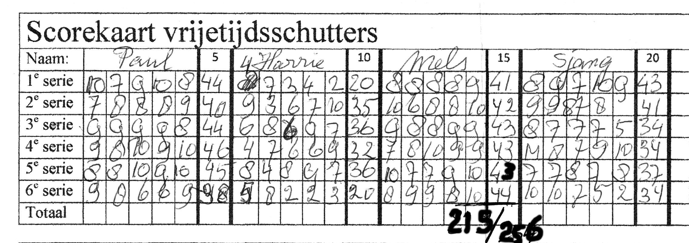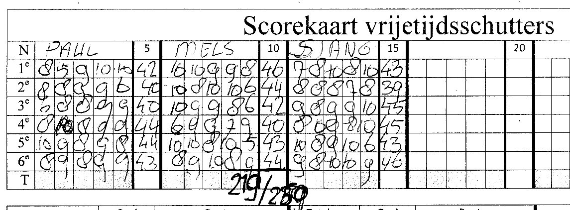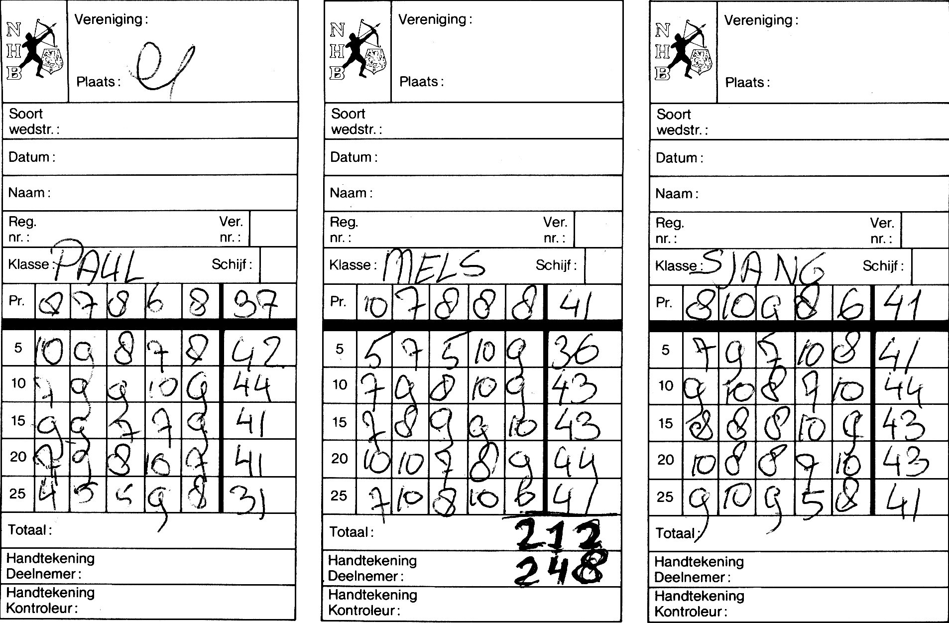 Mels heeft de eerste keer een 8+ gem. geschoten (20 en 25 pijlen) bij een handboog bondswedstrijd, 209 punten bij 25 pijlen.