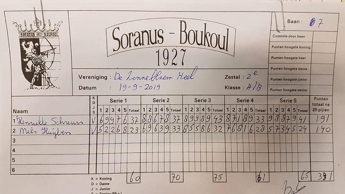 Mels heeft de hoogste handboog wedstrijd score gehaald tot nu toe.