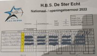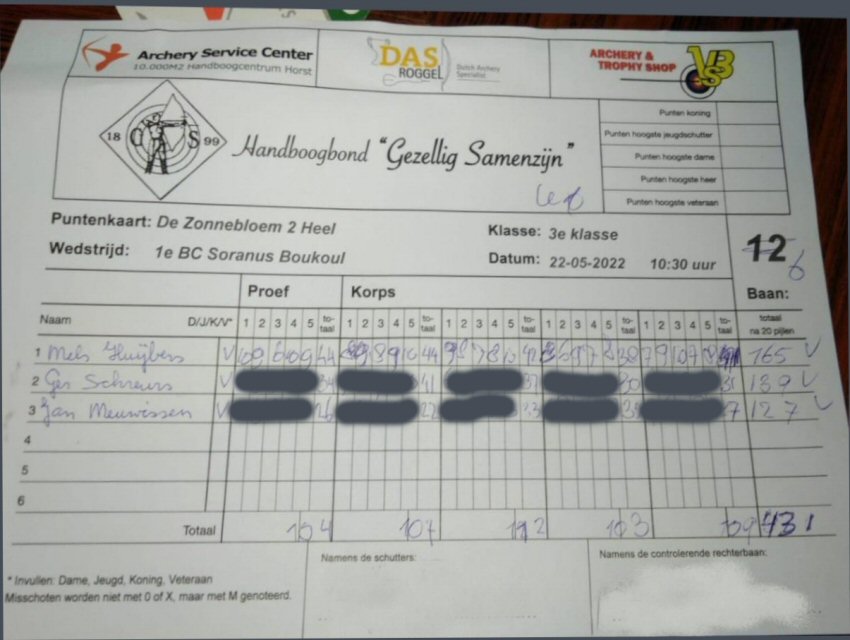 De score is terug gerekend naar de afmetingen van de wedstrijdkaart, de 9 en de 10 resp 10 en 5 cm doorsnede.